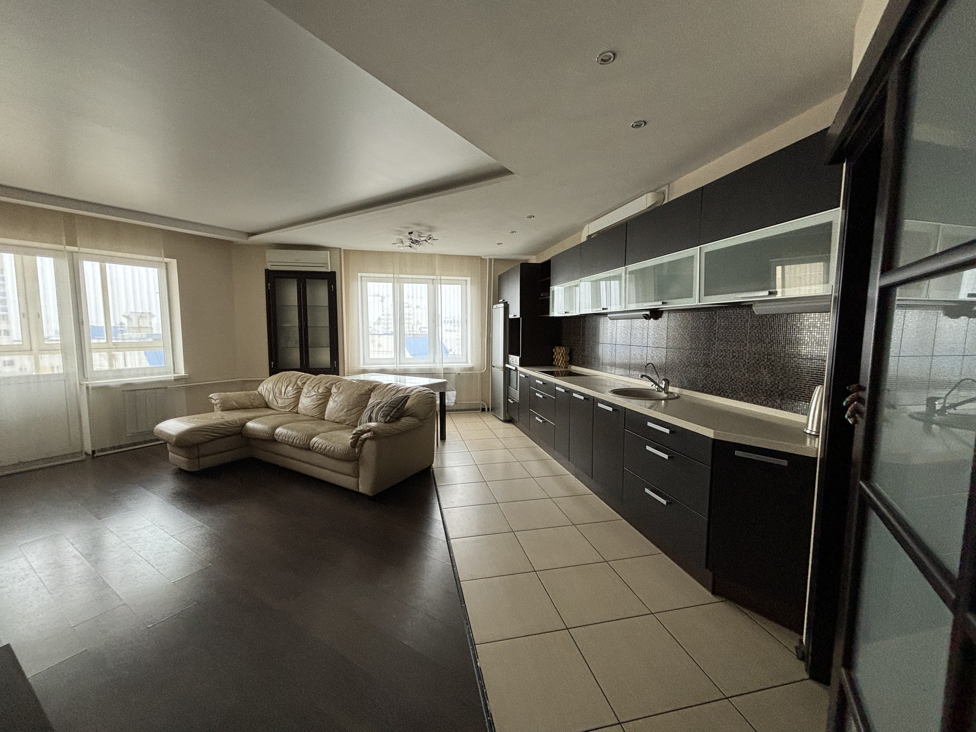 В связи с переездом в другой город продается 3-к. квартира, 86.9 м2. Просторная светлая квартира для большой семьи: две отдельных комнаты спальня и детская + большая кухня-гостиная с геометрией, которая не оставит равнодушным, два санузла, хозблок со стиральной машиной и водонагревателем вынесены в отдельную зону. 3 лоджии с панорамным остеклением, окна на юго-восточную сторону с видом на ТЦ Комсомол и Тюменский тракт, большая входная группа. В квартире сделан качественный стильный ремонт по дизайн-проекту: комбинация ламинат + керамогранит на полу, обои под покраску на стенах, разноуровневые потолки, установлены межкомнатные двери из натурального дерева, имеется ванна-джакузи, 4 встроенные системы хранения.