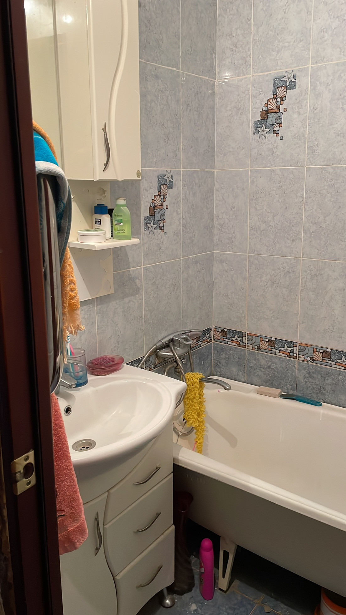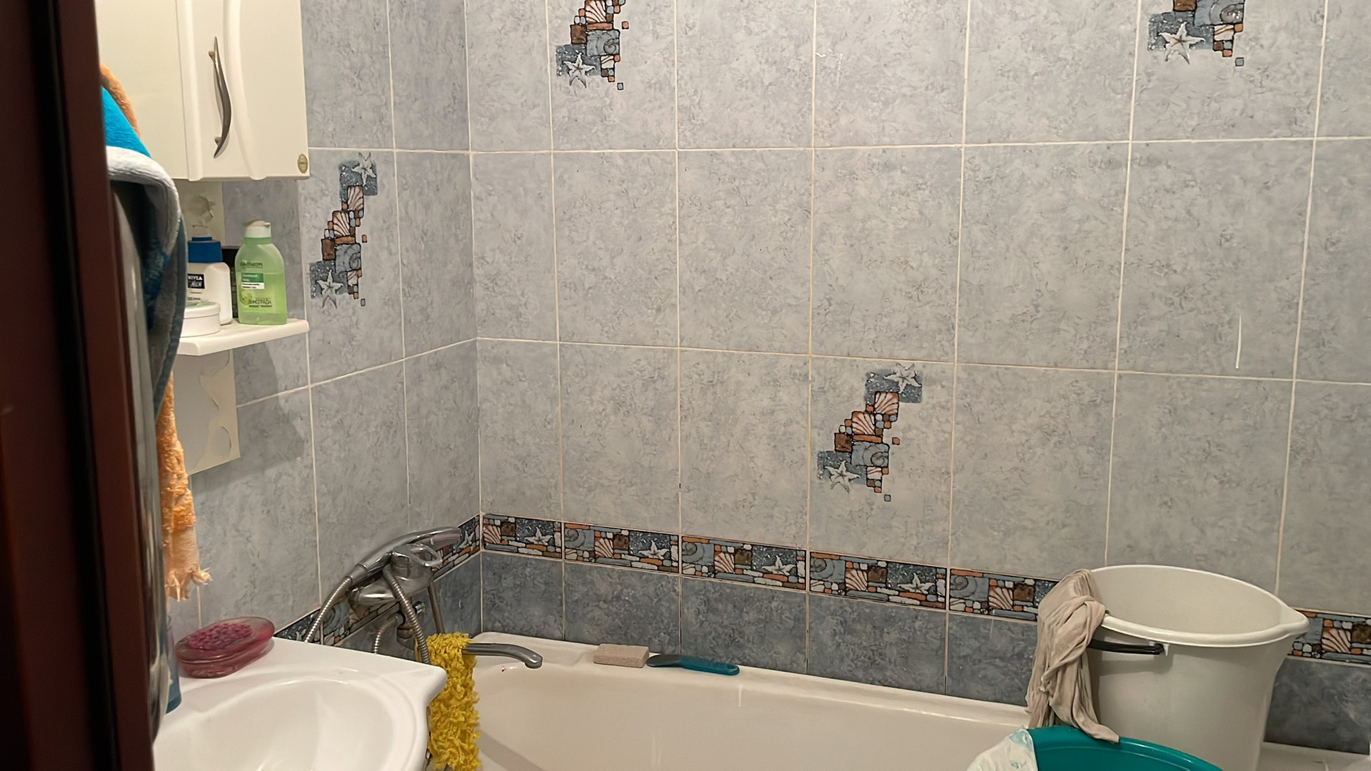 Ванная комната лежит плитка