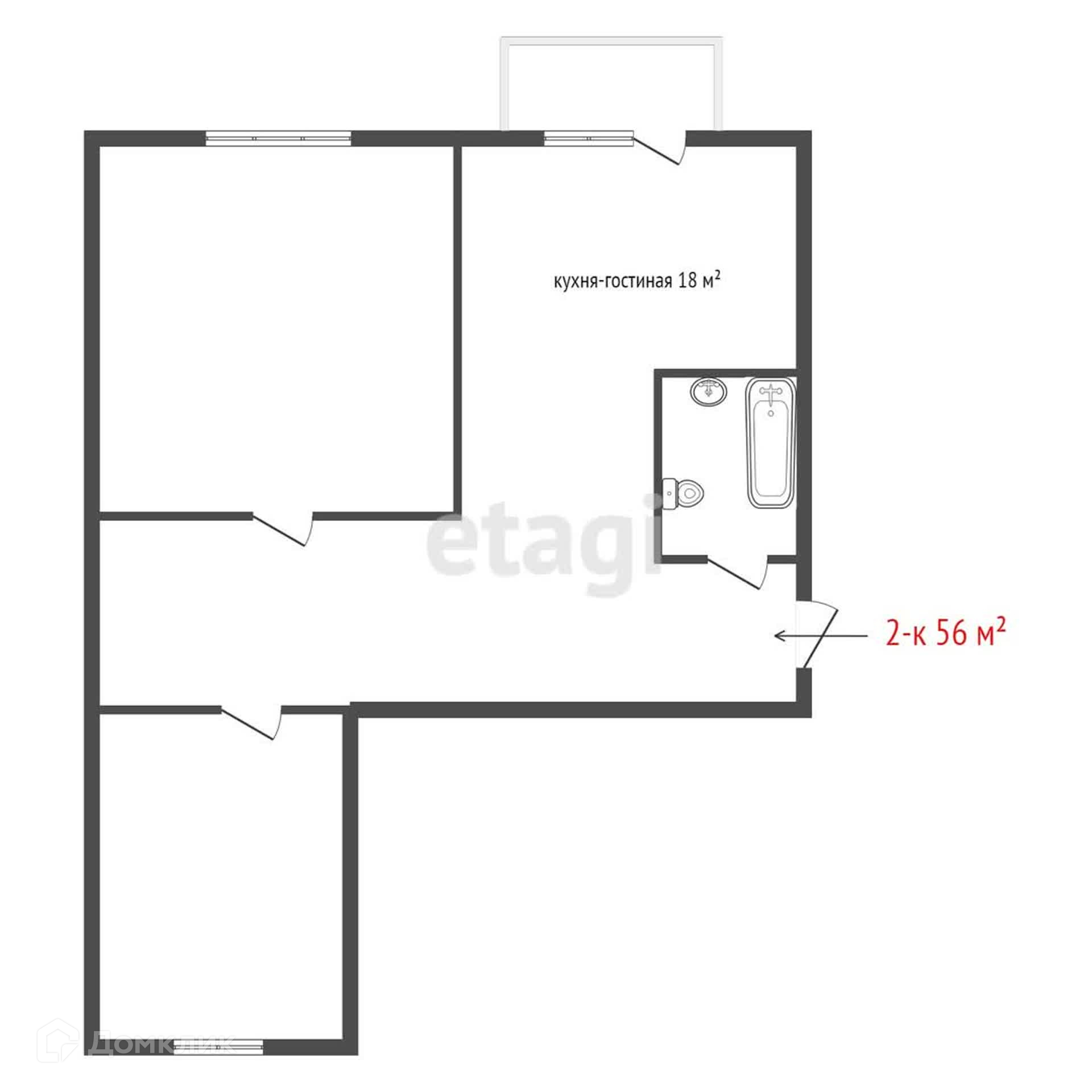 Общая площадь 56 м2