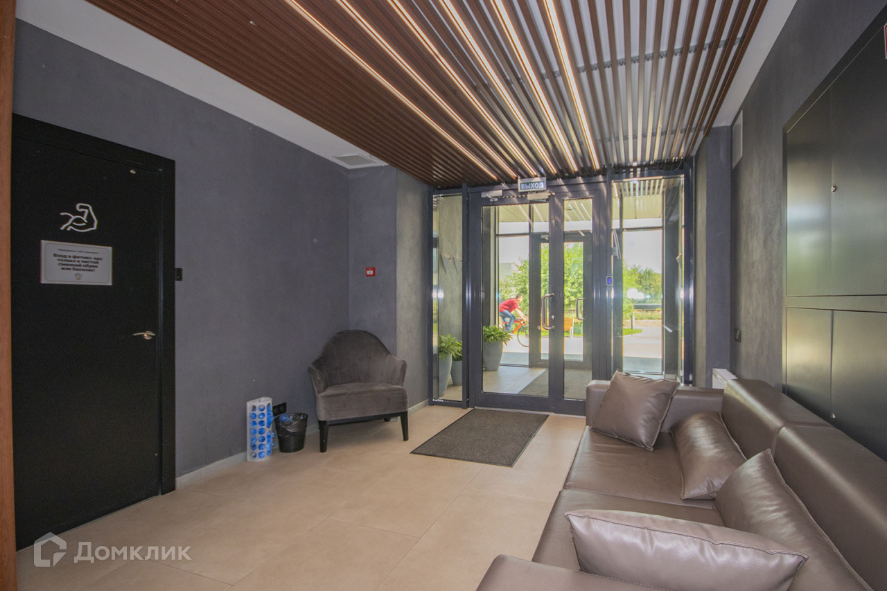 На первом-втором этажах дома уютное лобби, спортзал, выход во внутренний двор.