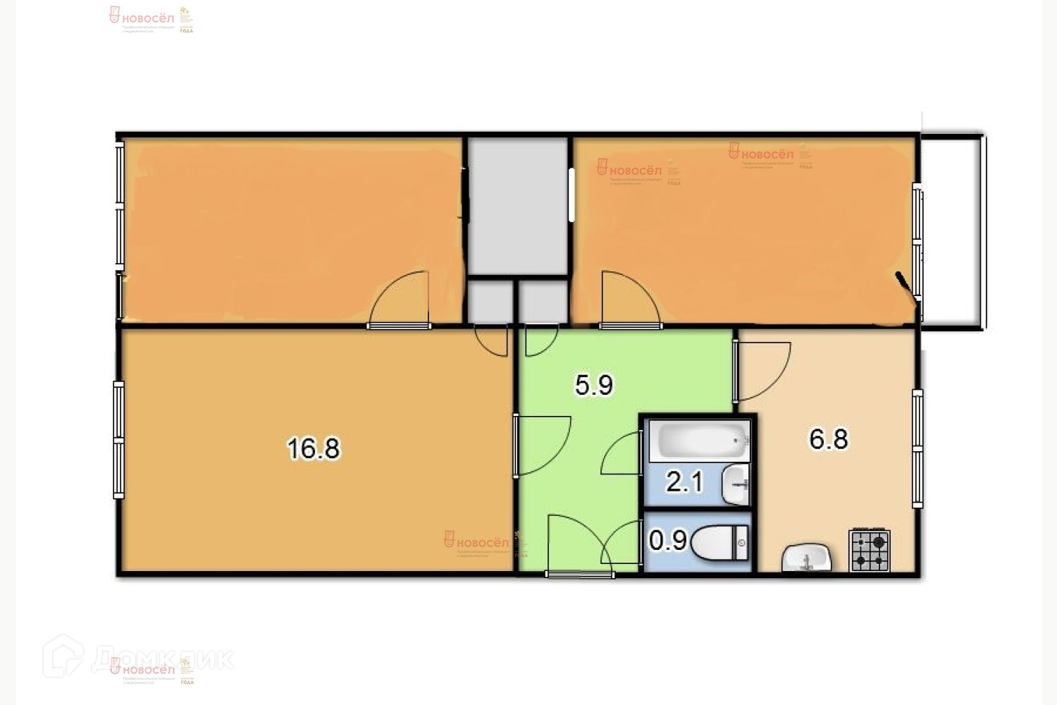 Общая площадь 59 м2