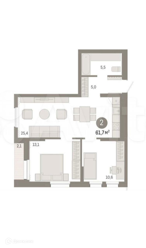 Общая площадь 61.7 м2
