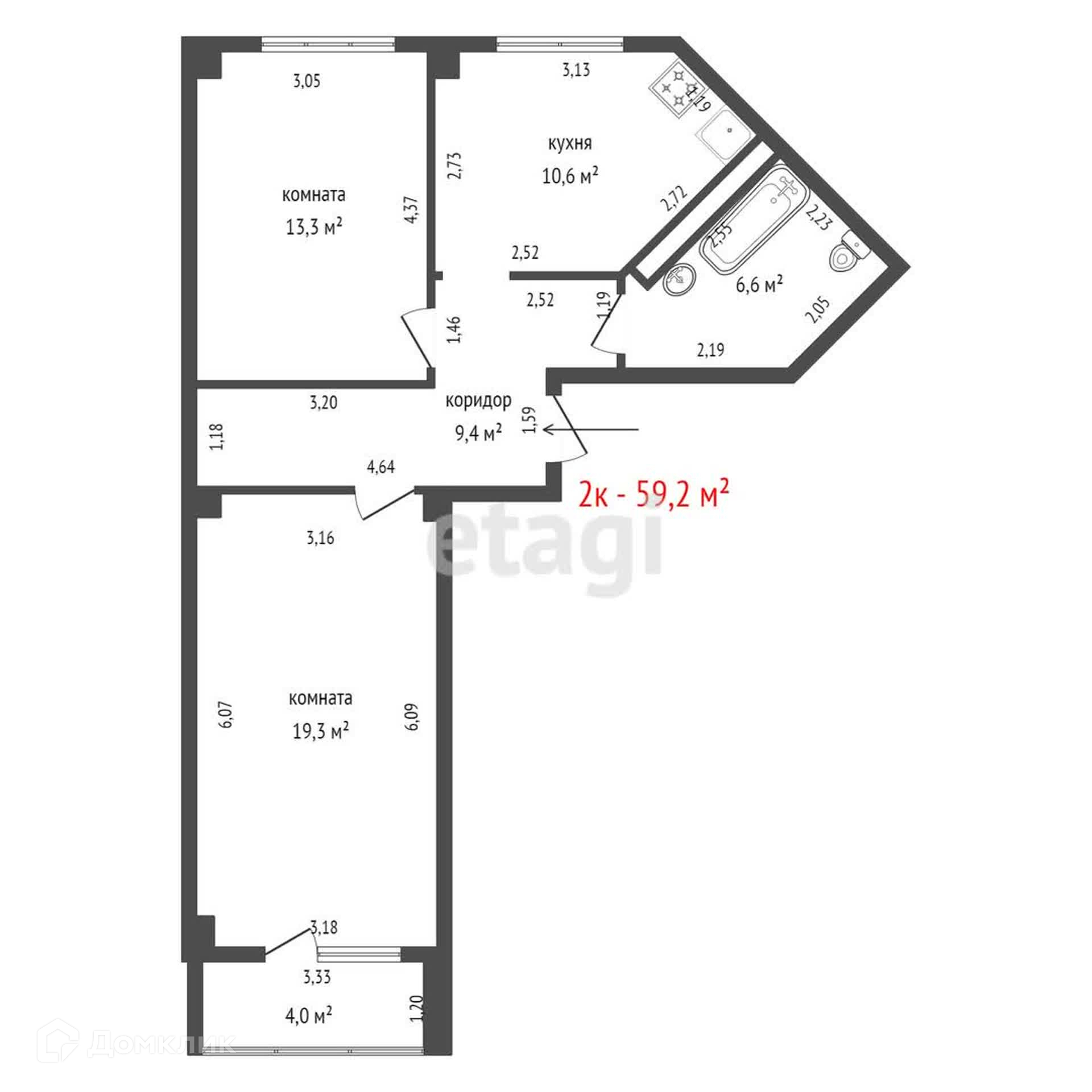 Общая площадь 59.2 м2