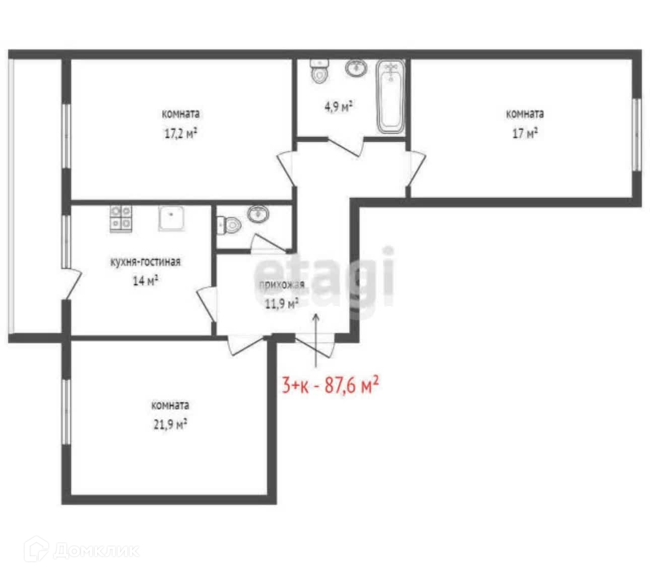Общая площадь 87.6 м2