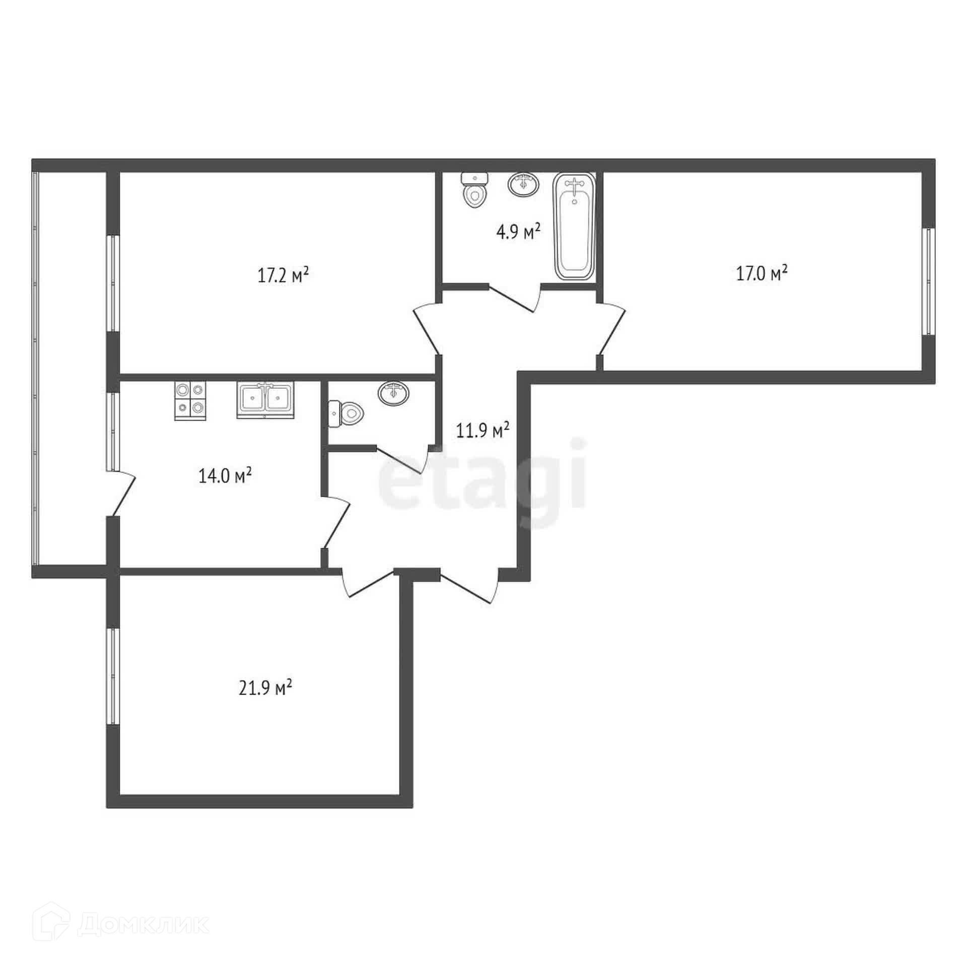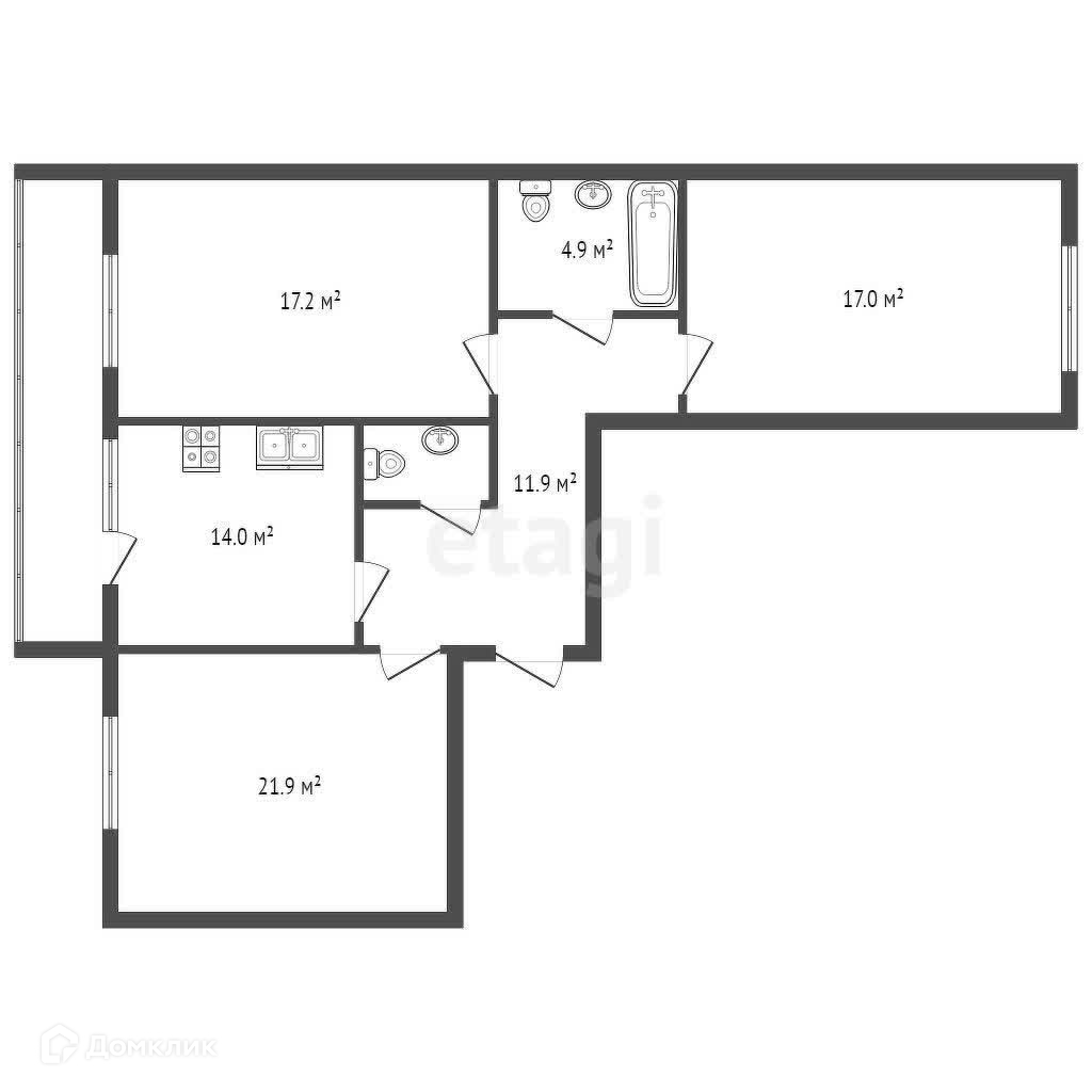 3-комнатная квартира, 87.6 м2, этаж 17 / 23, на продажу в Екатеринбурге, улица Громова, 26