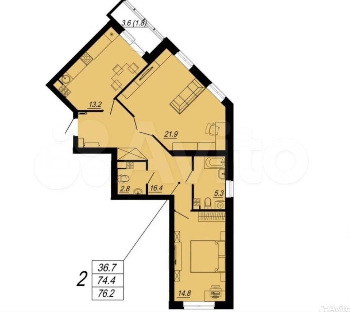Общая площадь 73.2 м2