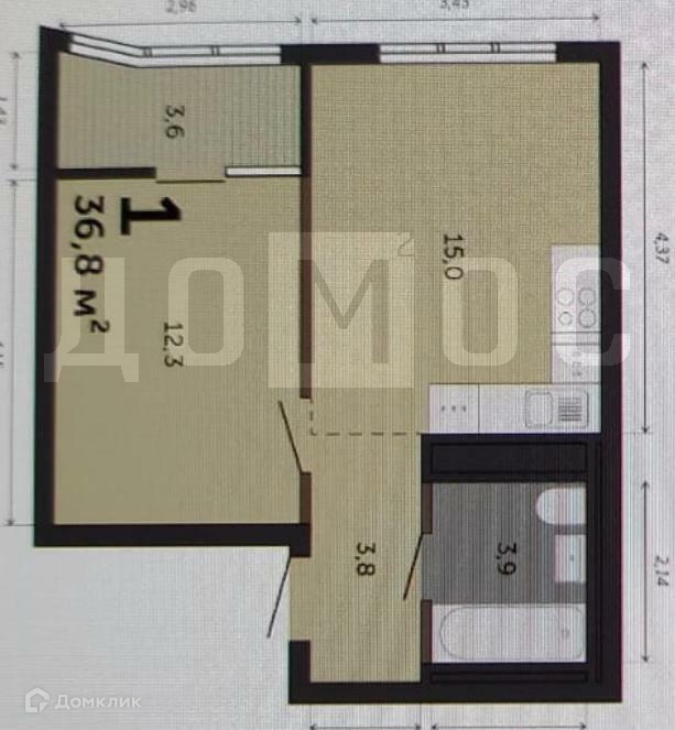 Общая площадь 36 м2