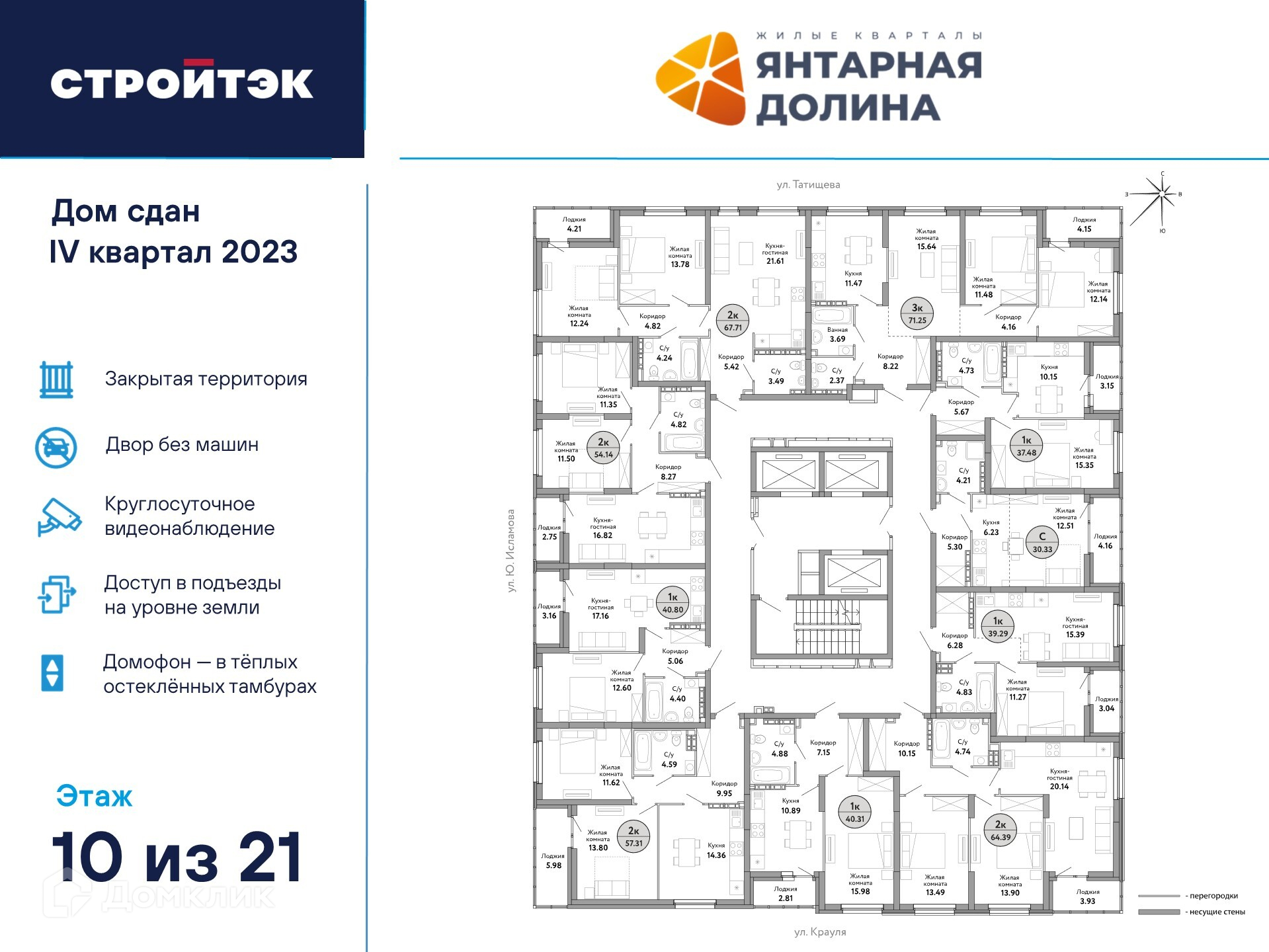 Удобная навигация с номерами этажей и квартир