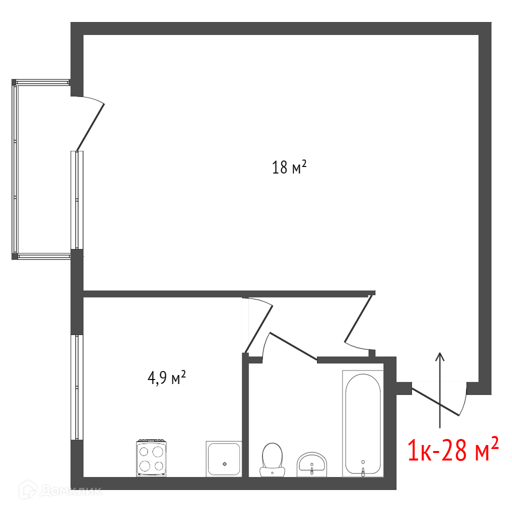 Общая площадь 28 м2