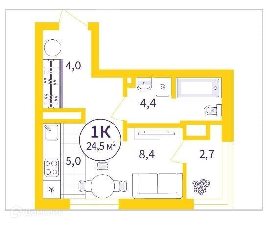 Общая площадь 24.5 м2