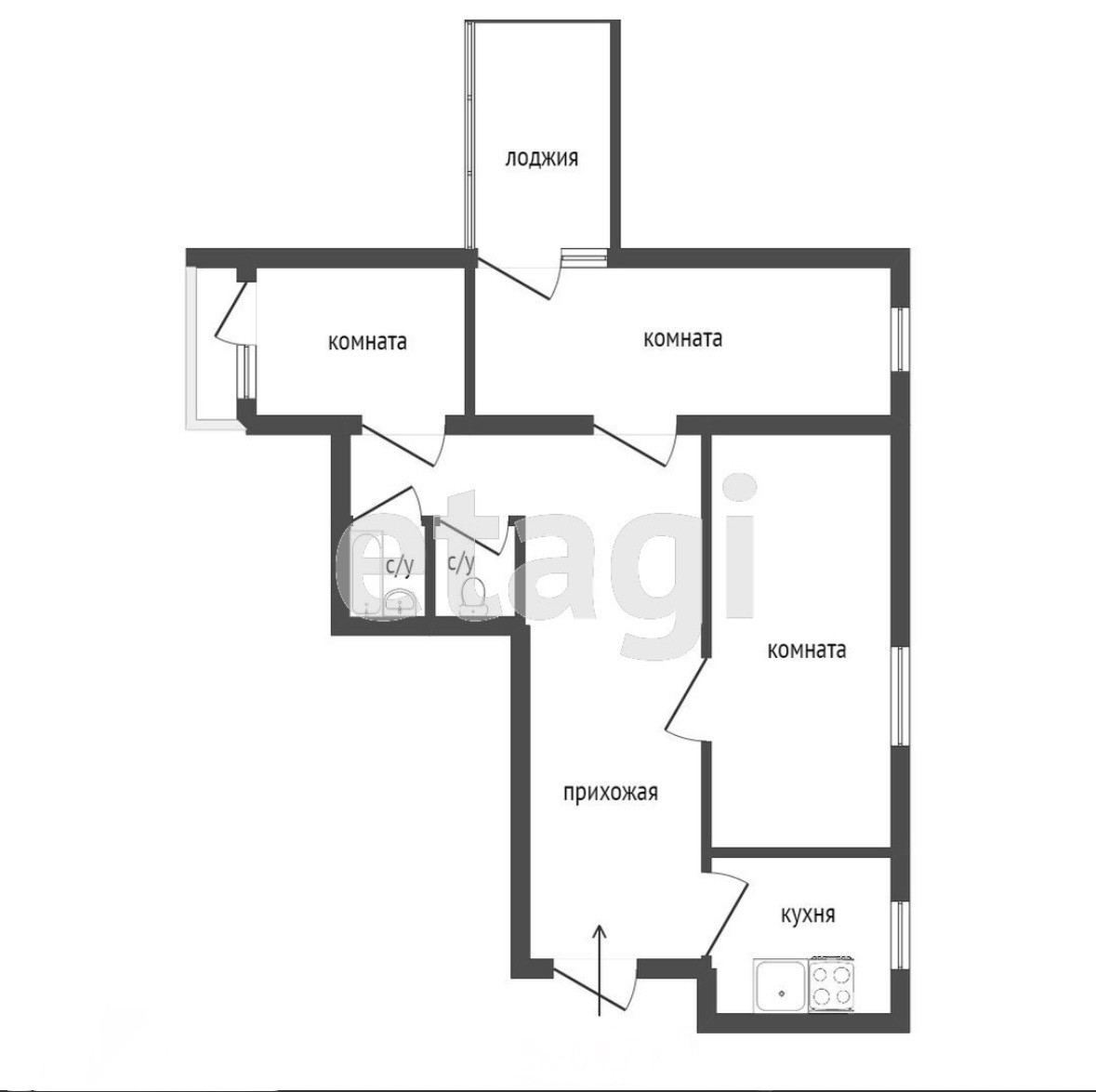 Продается 3-комнатная квартира 63,5 кв.м + огромная лоджия 26 кв.м, которая не входит в общий метраж!