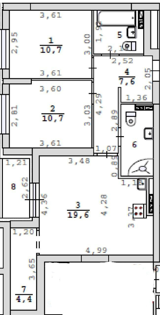 Несмотря на то, что квартира требует ремонта, это открывает перед вами возможность обустроить её по своему вкусу и предпочтениям. Также в квартире предусмотрено два санузла, что добавляет удобства и комфорта в повседневную жизнь.