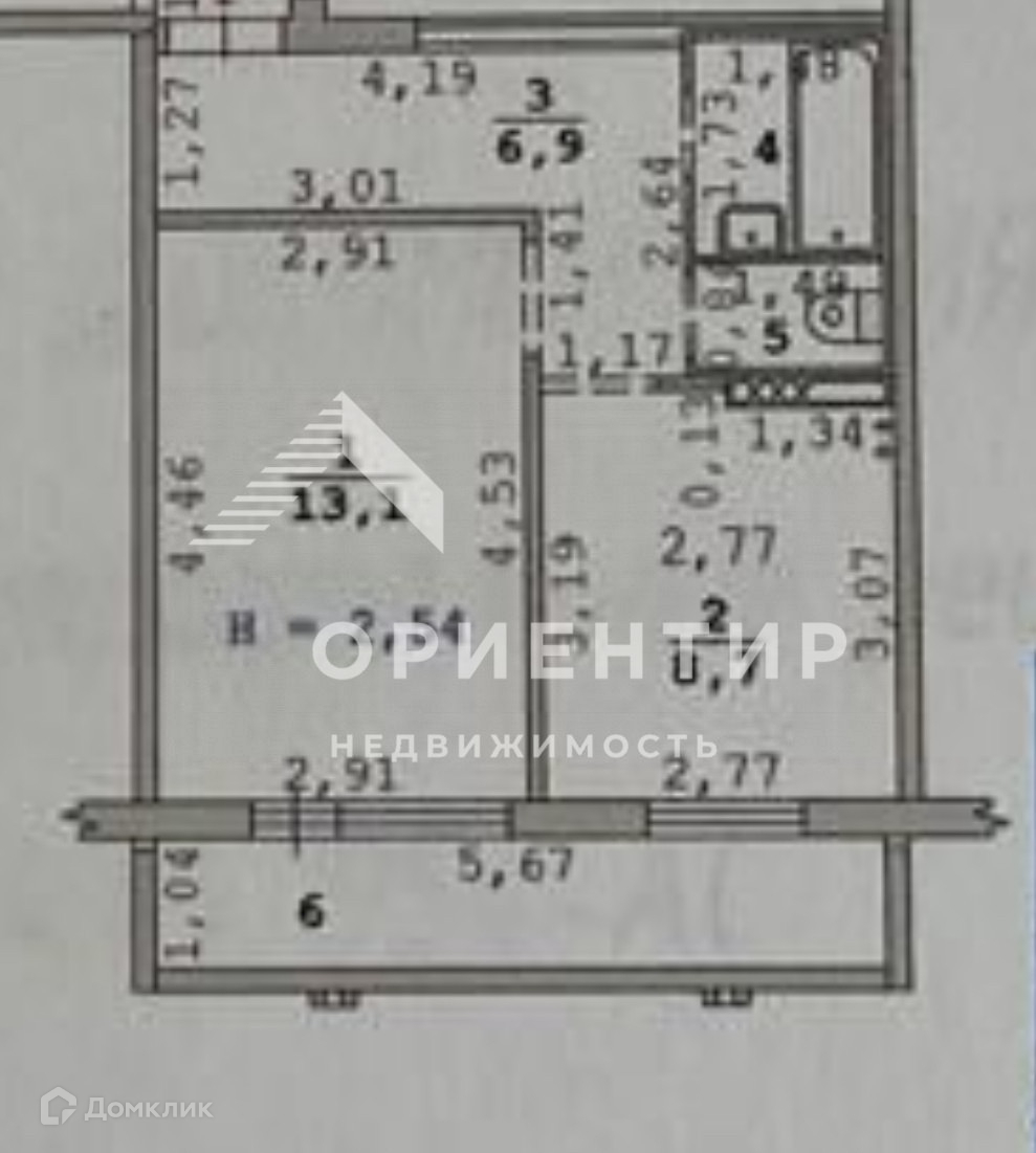 Общая площадь 32.6 м2