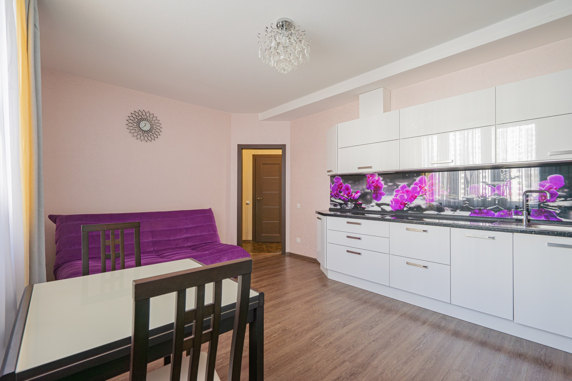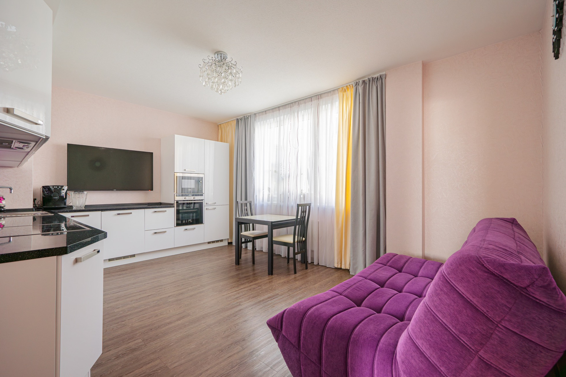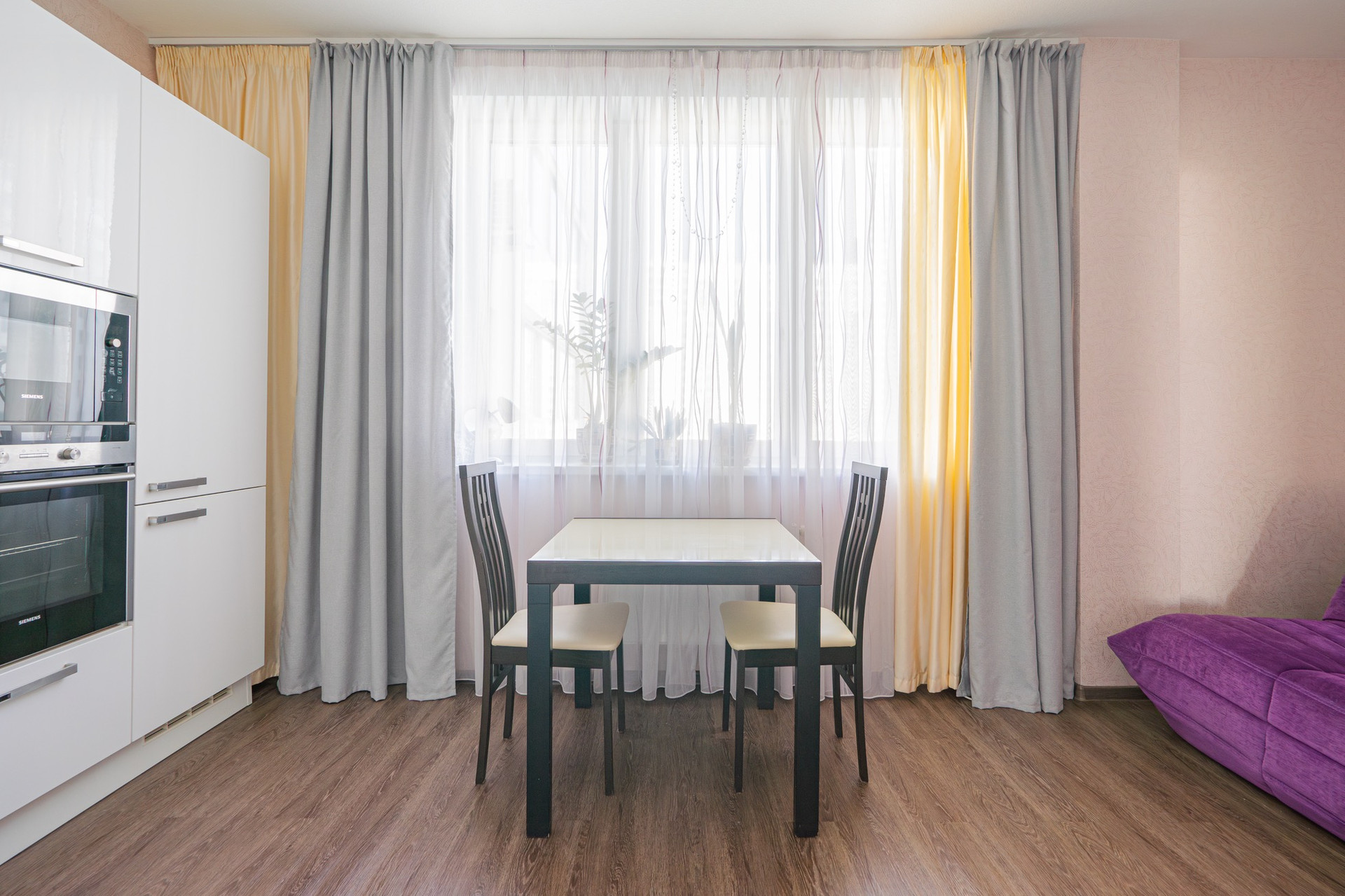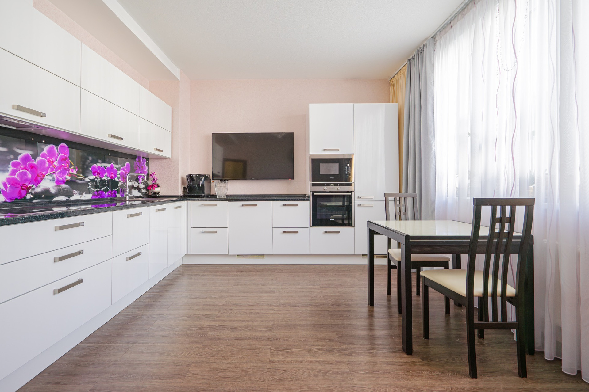 В квартире установлена большая кухня фирмы Мария, встроенная техника Сименс.