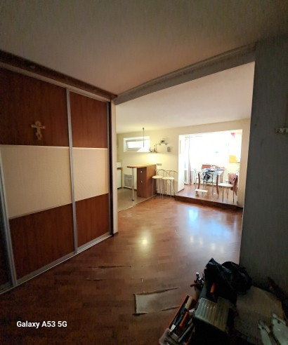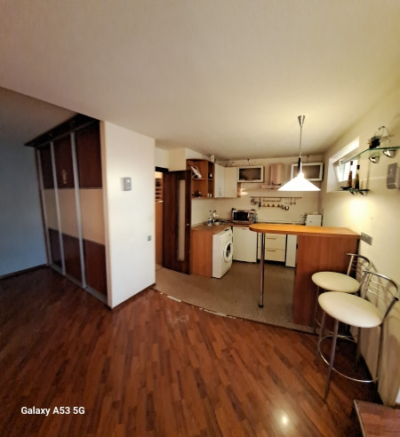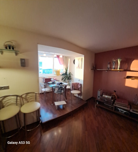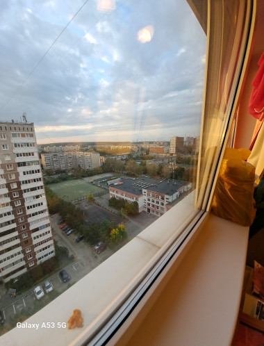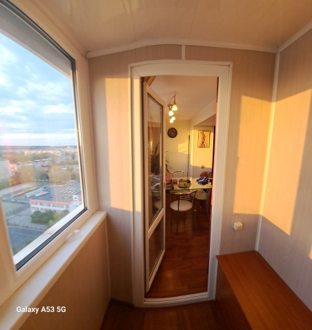 В квартире не стандартная планировка кухня- гостиная и спальня, часть лоджии присоединена к кухне за счет чего открывается потрясающий вид на закаты.