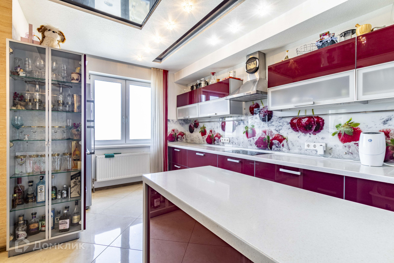 Главный холл, и смежное пространство с кухней позволяют организовать любой праздник для большой семьи. Большое межкомнатное пространство создаёт впечатляющий эффект, кухня оборудована стеклянными шкафами (с встроенными доводчиками) и свежим ярким дизайном, светлые тона создают эффект свежести.