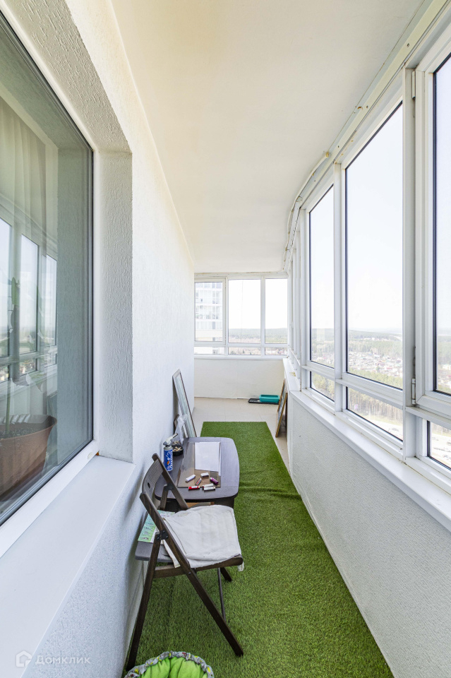 Большая панорамная лоджия имеющая сквозное соединение, для того чтобы можно было организовать на ней зону отдыха летом, в жаркие дни.