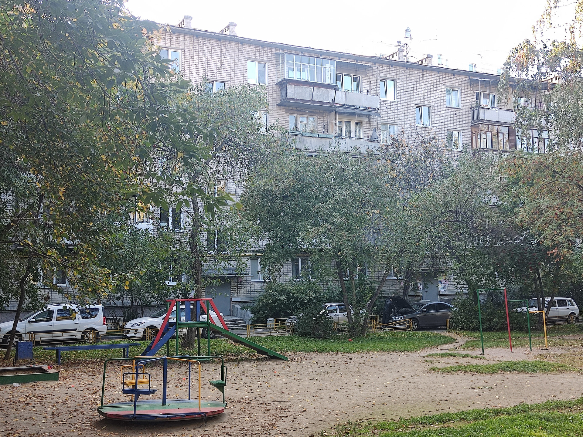 Кирпичный дом, отличная звукоизоляция, детские площадки, чистый подъезд, зеленый двор, доброжелательные соседи,