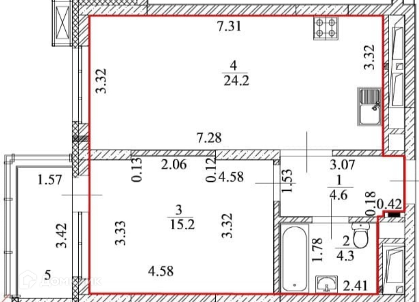 Ремонт квартиры выполнен по индивидуальному дизайн-проекту с использованием дорогостоящих материалов. Функционал квартиры состоит из кухни-гостиной, площадью 24,2 кв.м., просторной спальной - 15,2 кв.м., и удобной прихожей – 4,6 кв.м.