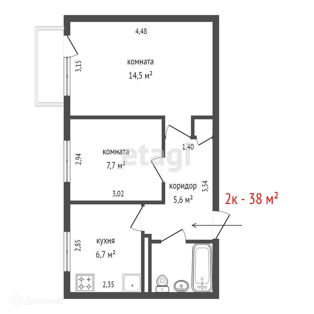 Общая площадь 38 м2