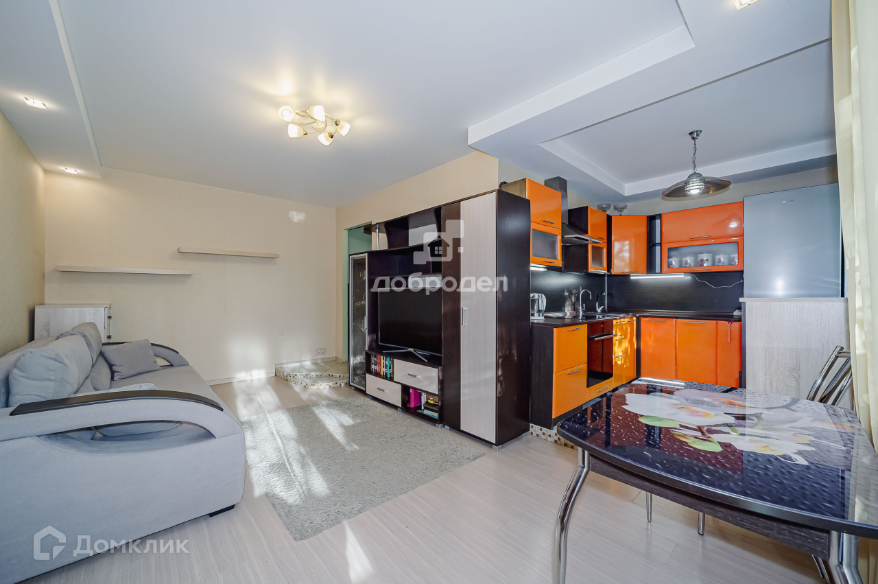 В квартире сделан косметический ремонт. Кухня объединена с просторной гостиной. Балкон обшит пластиком. Санузел раздельный, все в кафеле. Кухонный гарнитур при продаже остается, техника обсуждается.