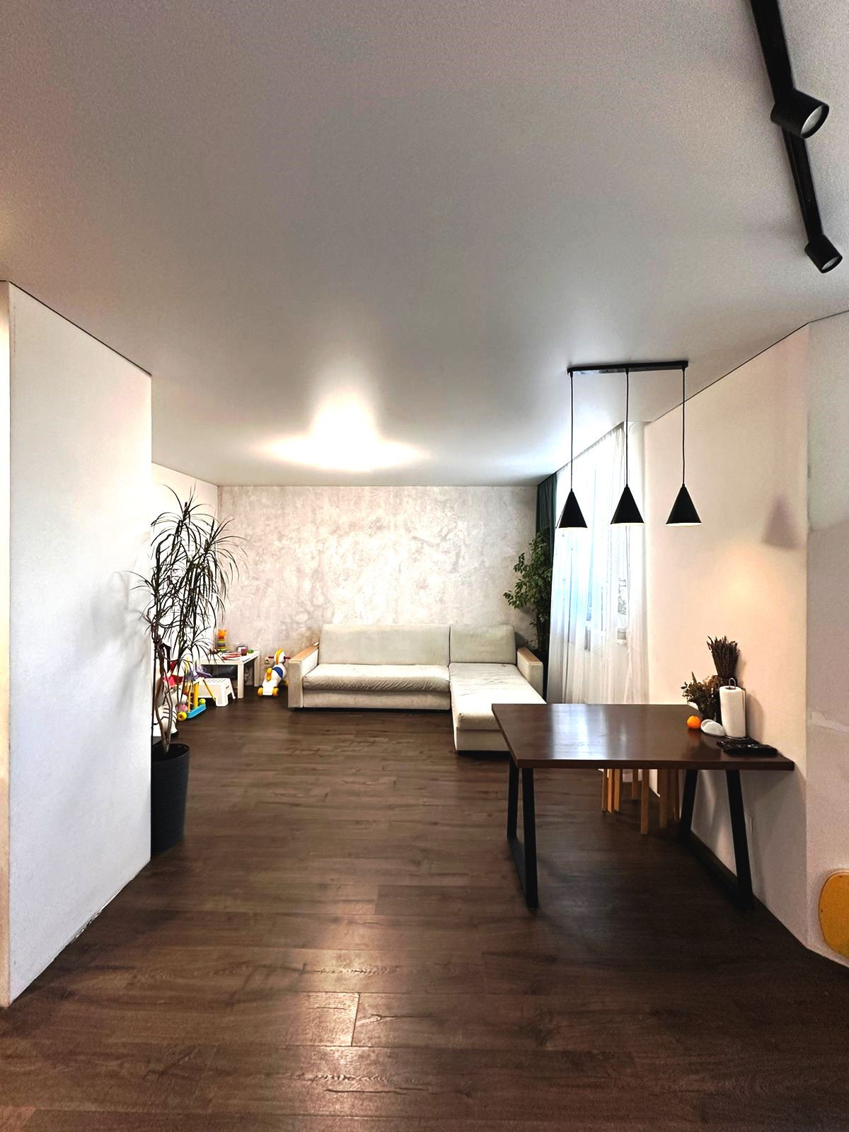 Жилая площадь составляет 26 квадратных метров, а кухня-гостинная  30 квадратных метров – что позволяет оптимально организовать одновременно обеденную и гостевую зоны.
