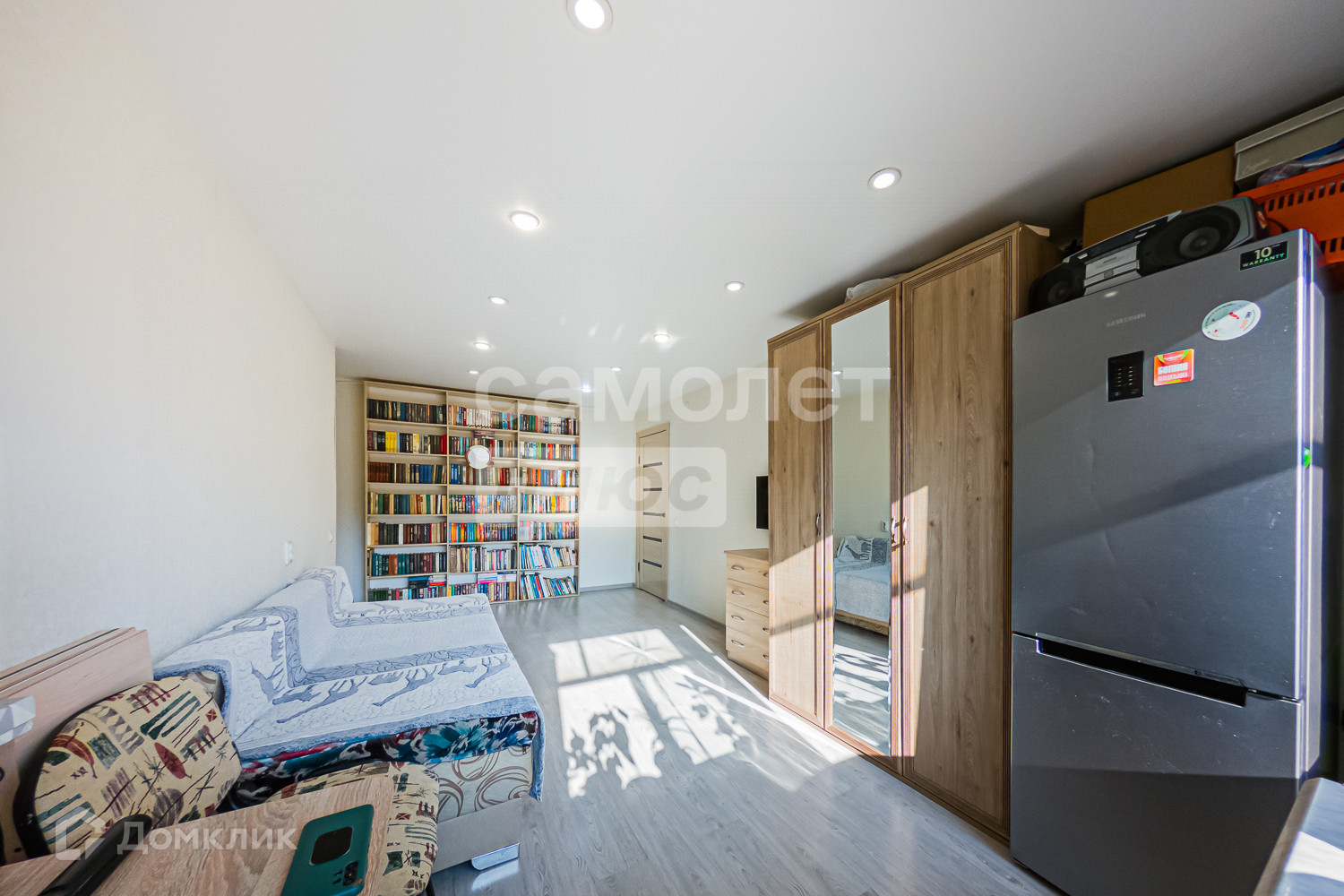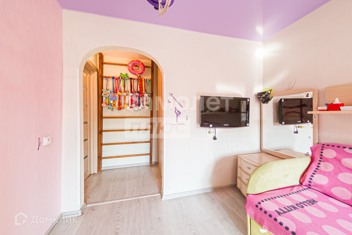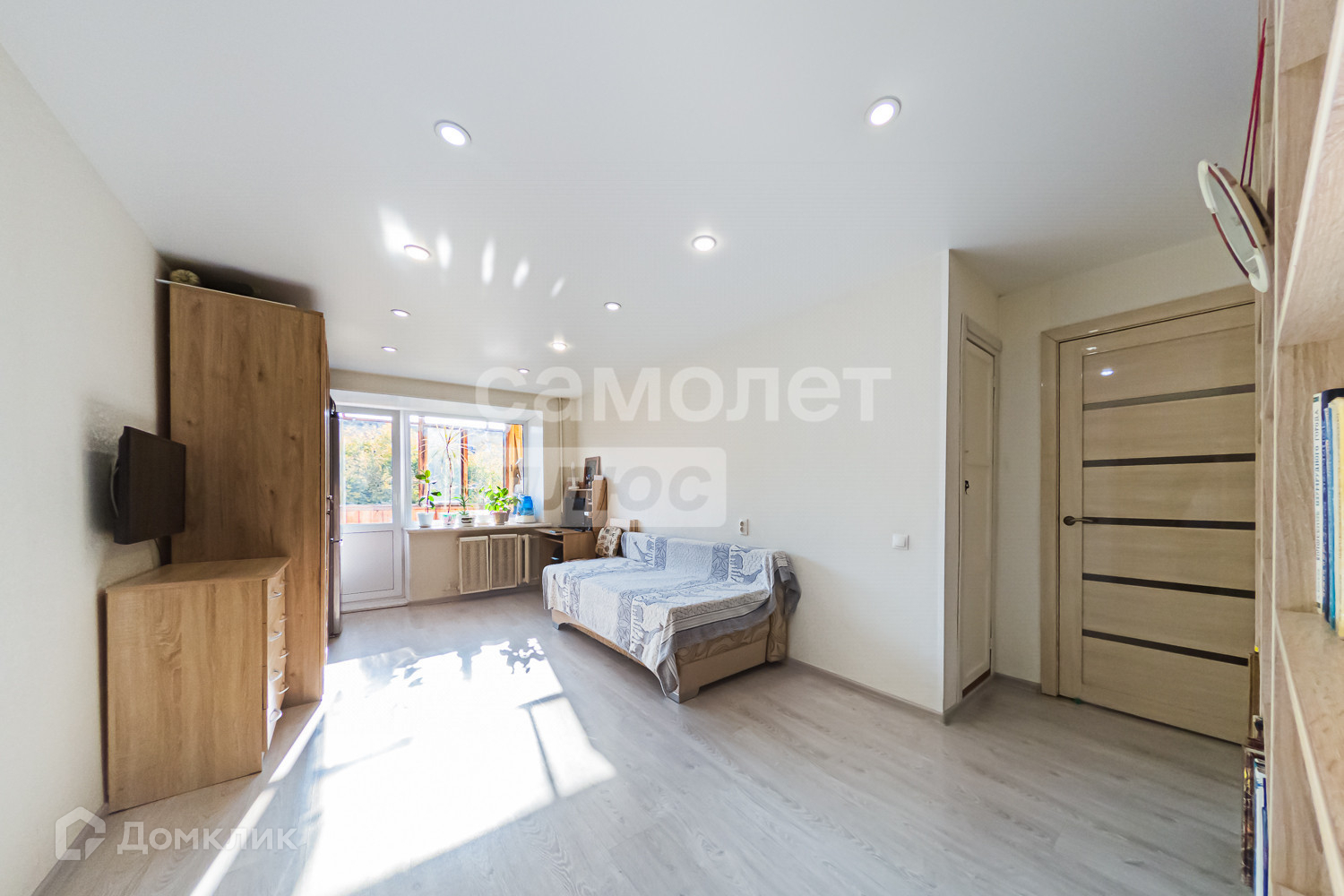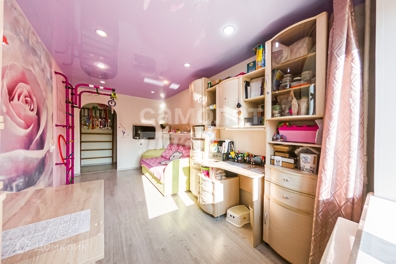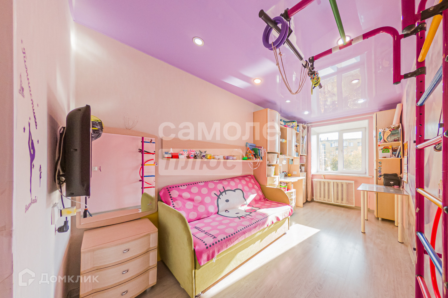 - ровные стены, ламинат на полу, натяжные потолки.