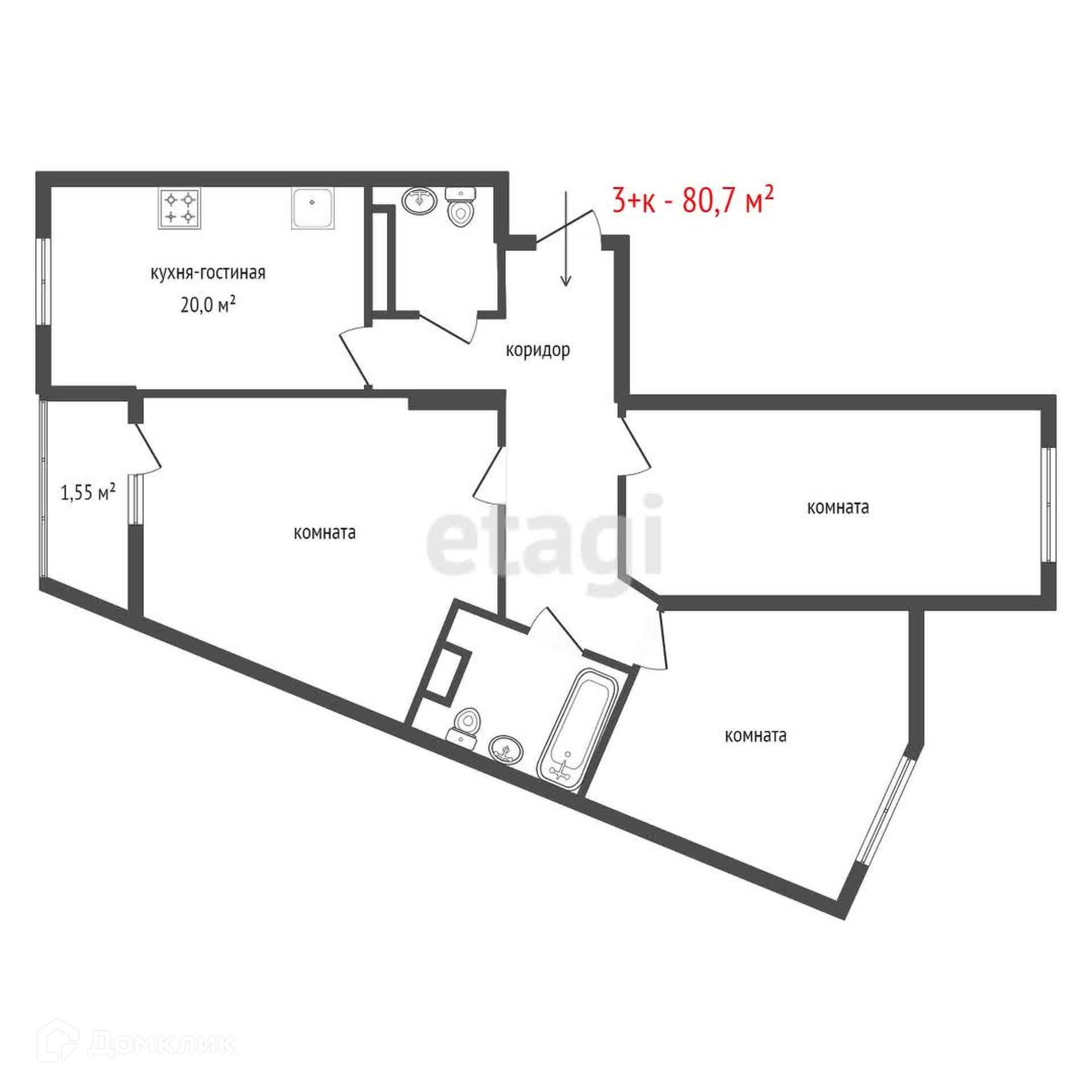Общая площадь 80.7 м2