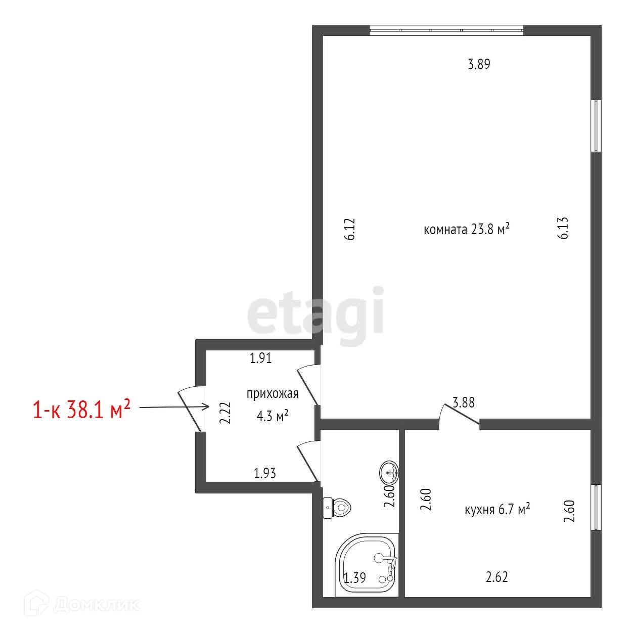 Общая площадь 38.1 м2