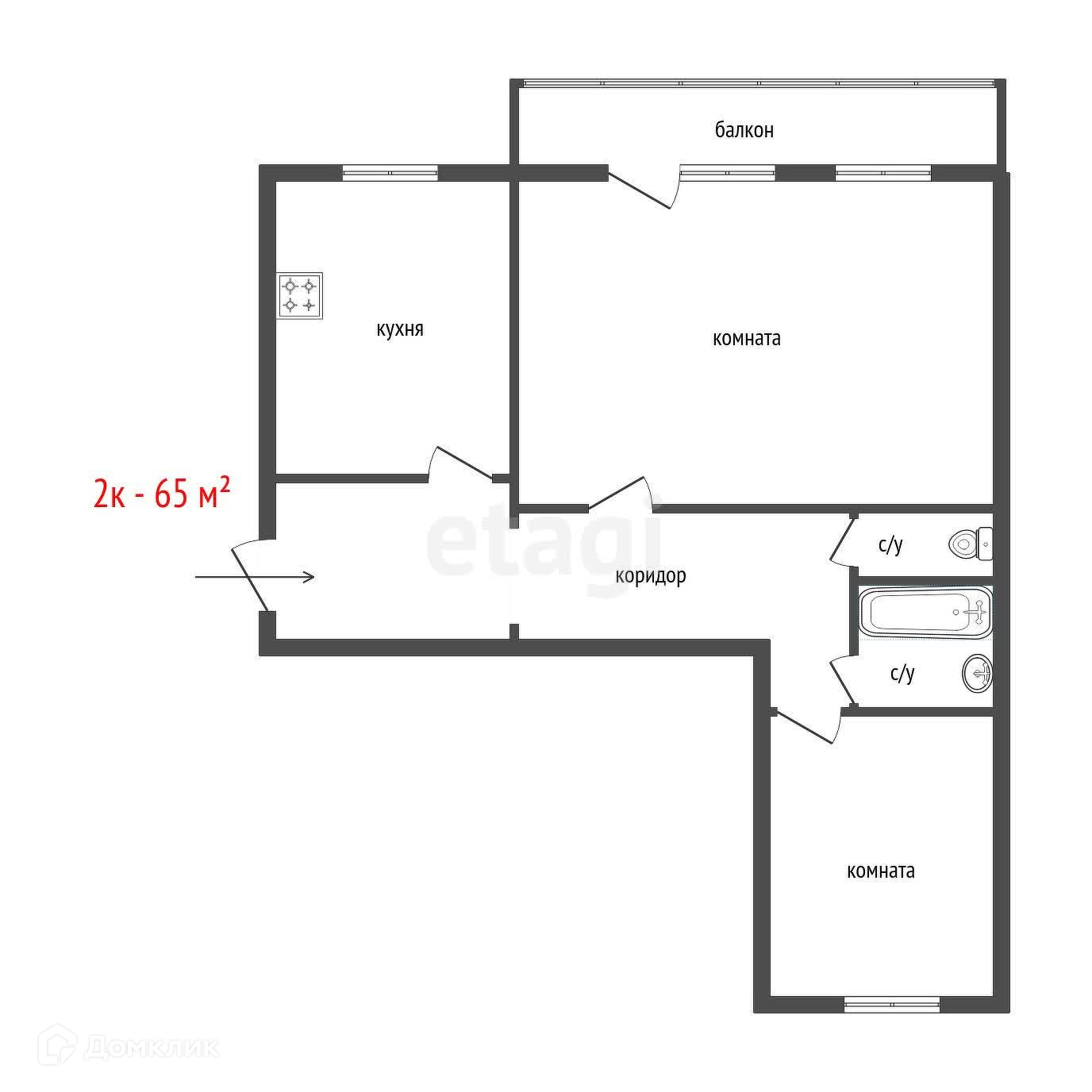 Общая площадь 65 м2