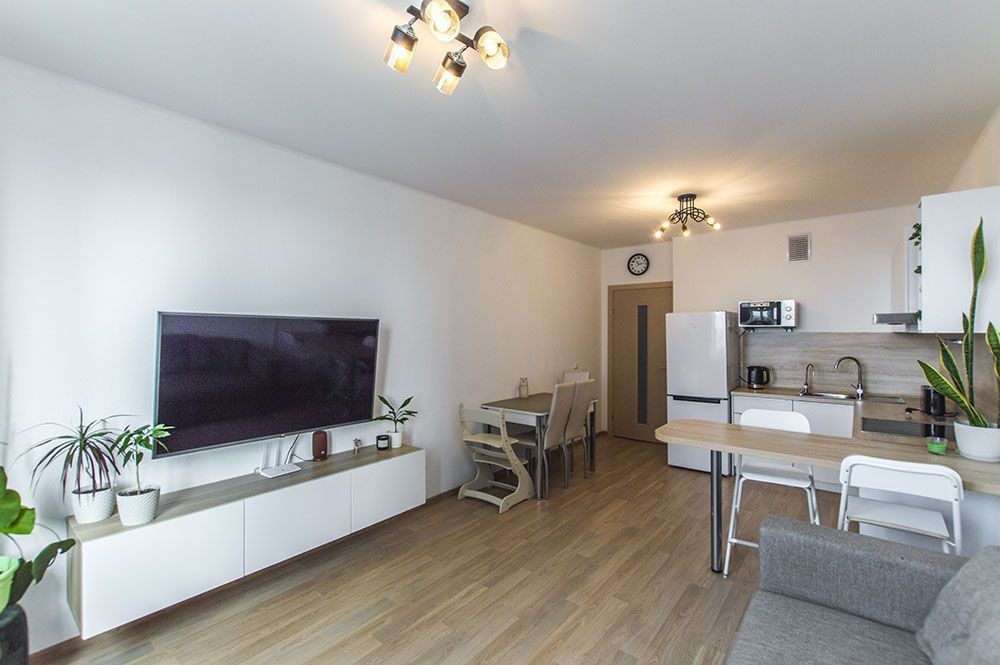 Продаётся двухкомнатная квартира площадью 67.9 c большой кухней-гостиной.