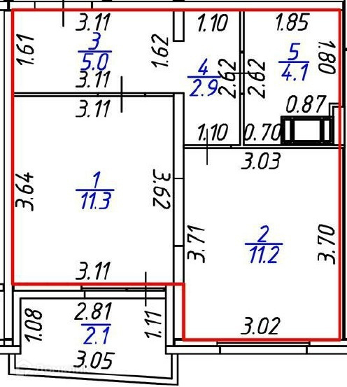 Жилая площадь 11.3 м2