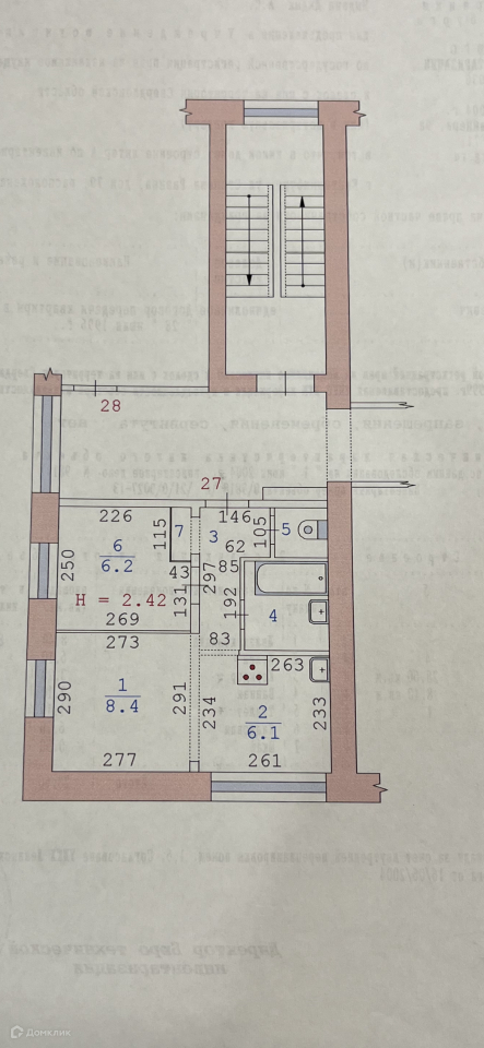 Общая площадь 28.6 м2