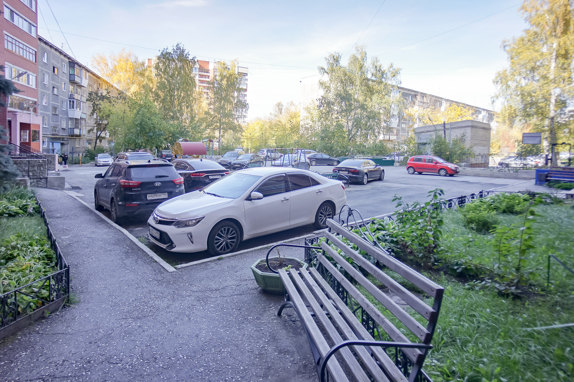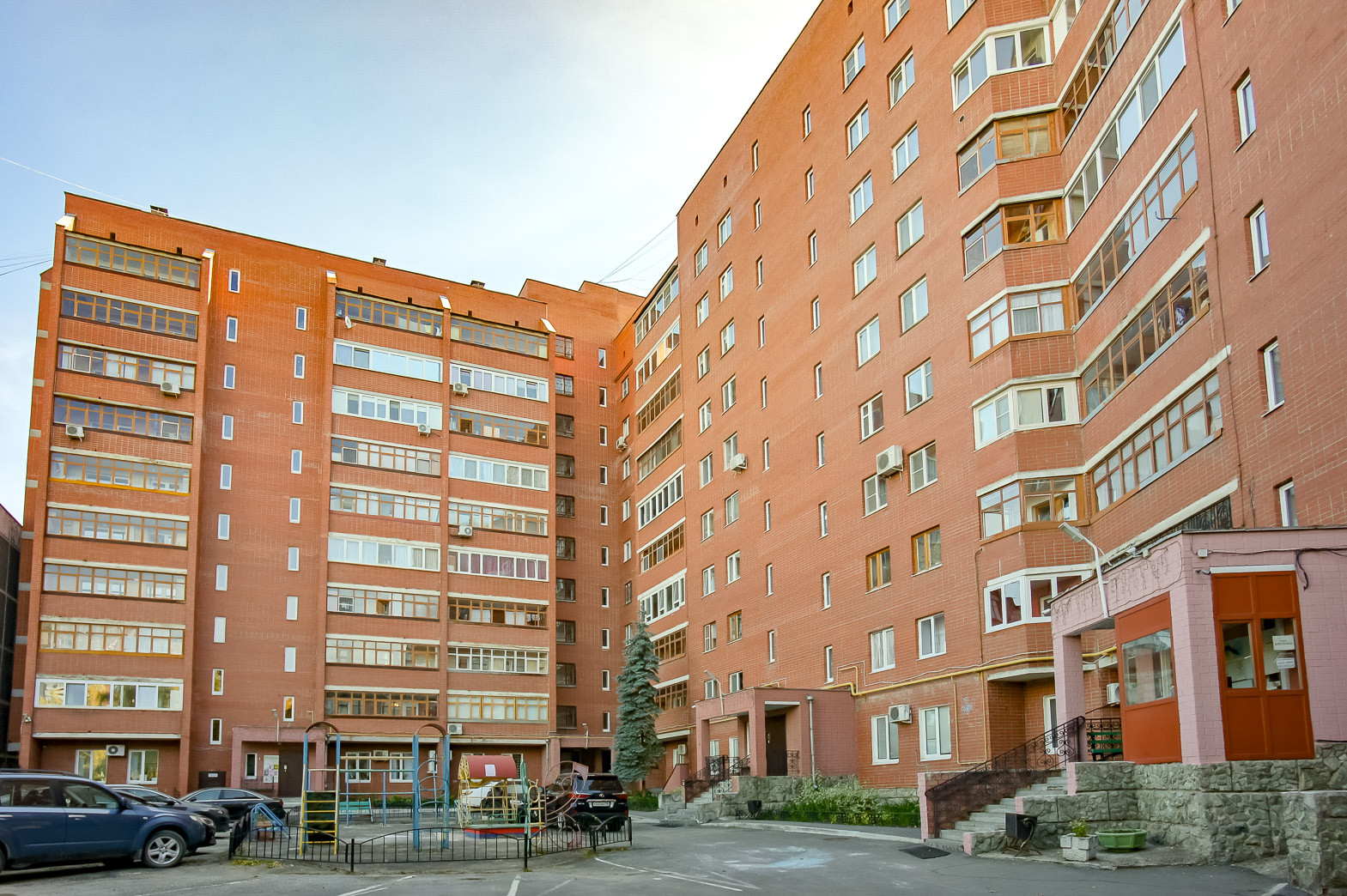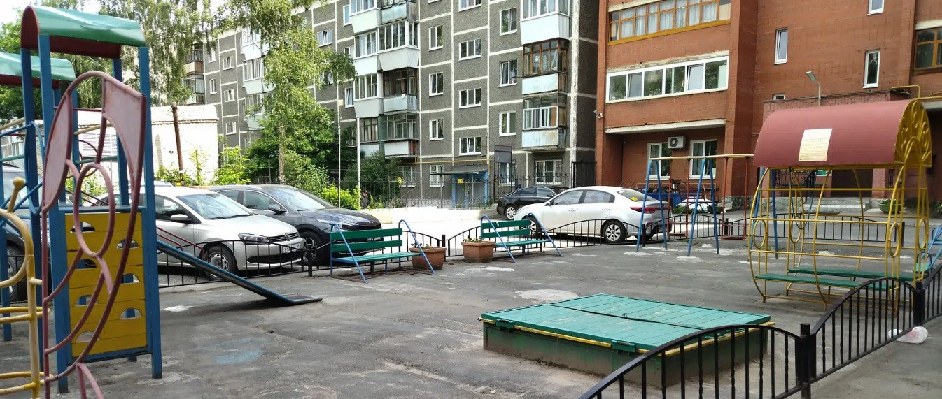 Территория двора - закрытая, охраняемая, есть видеонаблюдение, детская площадка, бесплатная наземная парковка для резидентов. Также возле дома, за территорией двора всегда есть свободные парковочные места.