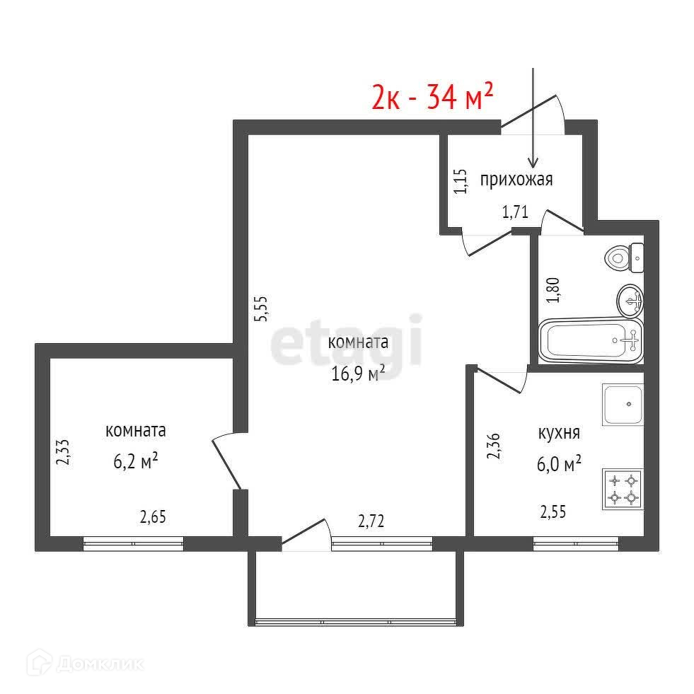Общая площадь 34 м2