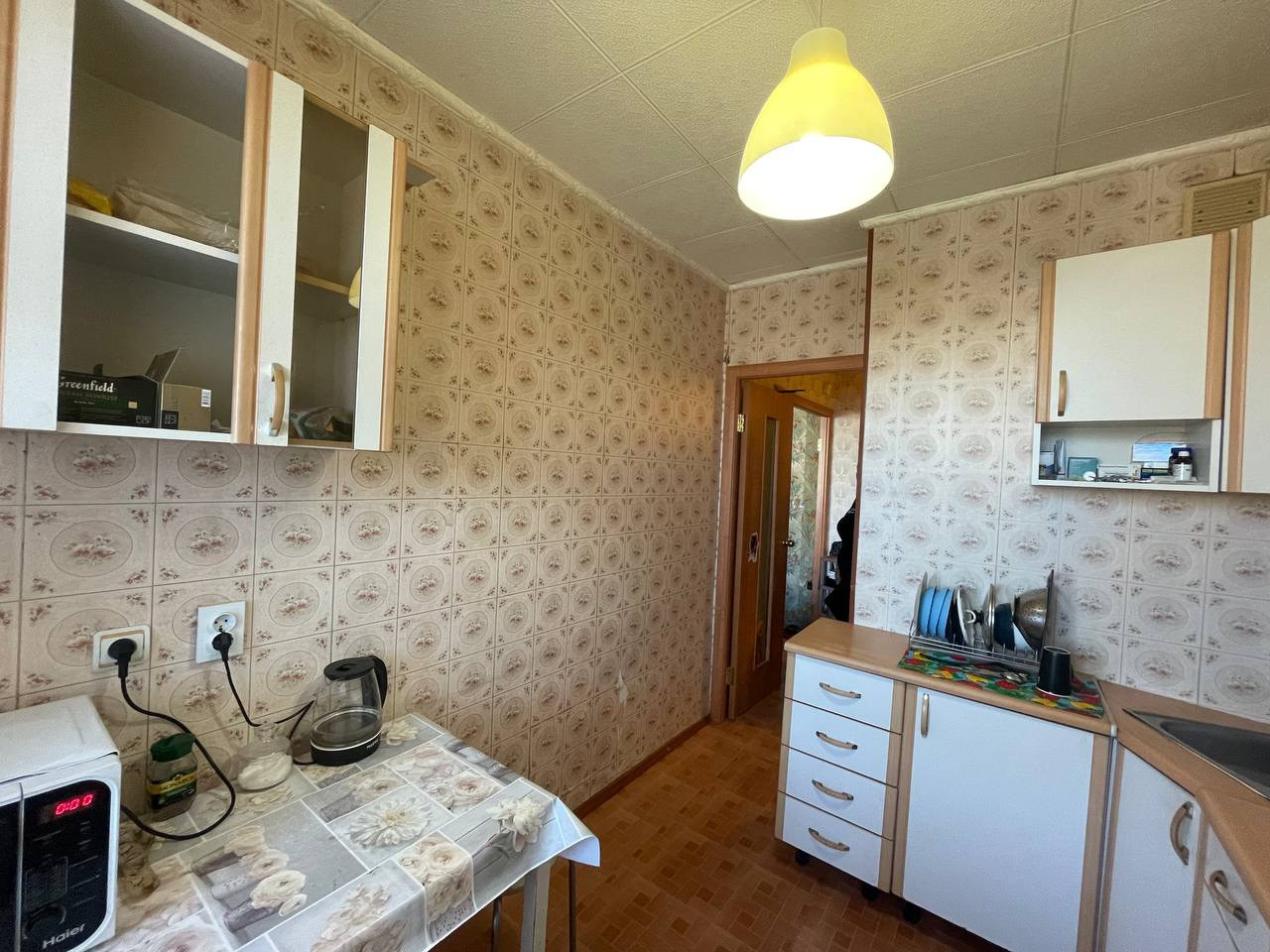 Кухонный гарнитур, электрическая плита, холодильник, микроволновая печь и стиральная машина остаются новым собственникам, что позволит им сразу же начать пользоваться квартирой без дополнительных вложений.