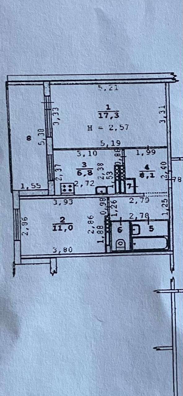 Санузел раздельный, что обеспечивает дополнительное удобство. Трубы канализации, стояки ГВС и ХВС были заменены, а счётчики опломбированы.