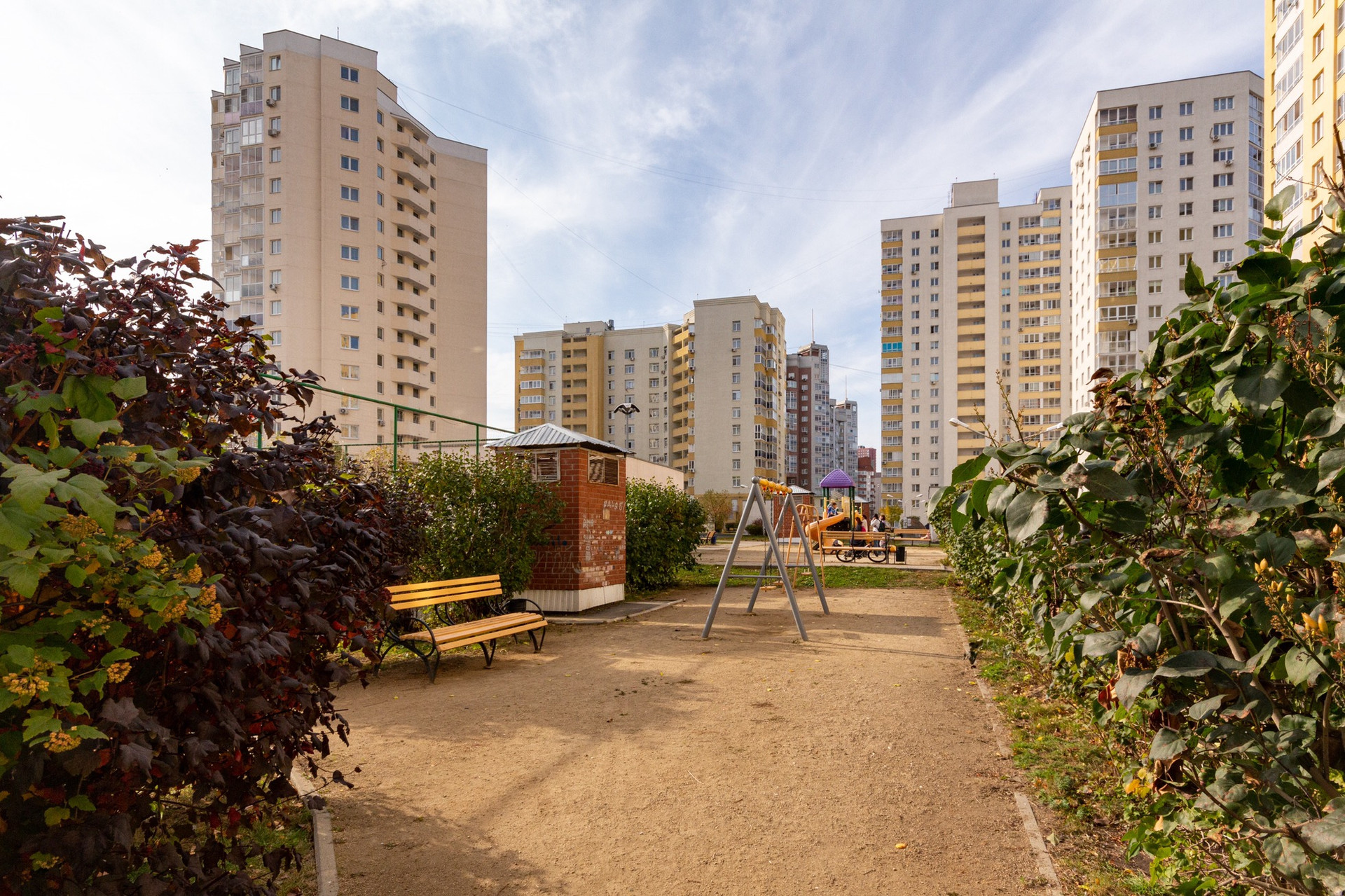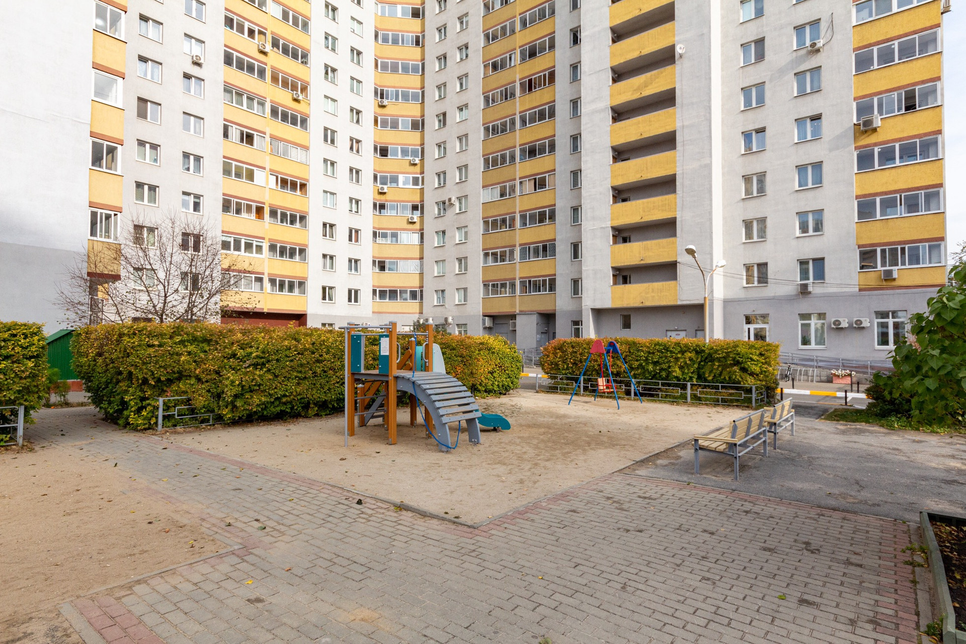 Из окон открывается вид на улицу, что добавляет жилью света и воздуха. Во дворе дома расположены детская и спортивная площадки, где можно проводить время всей семьёй.