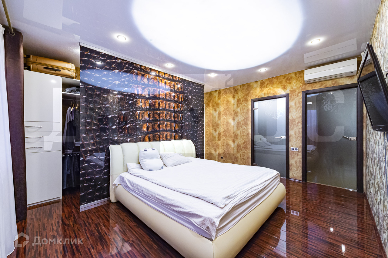 Окна в квартире выходят на разные стороны, в том числе во двор, установлена система кондиционирования во всех комнатах, мастер-спальня со своим вместительным санузлом позволит разместить сауну.