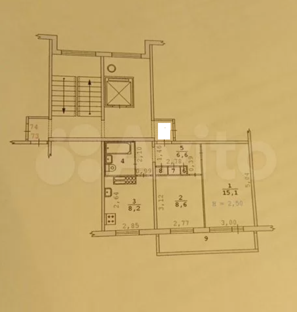 Общая площадь 43 м2