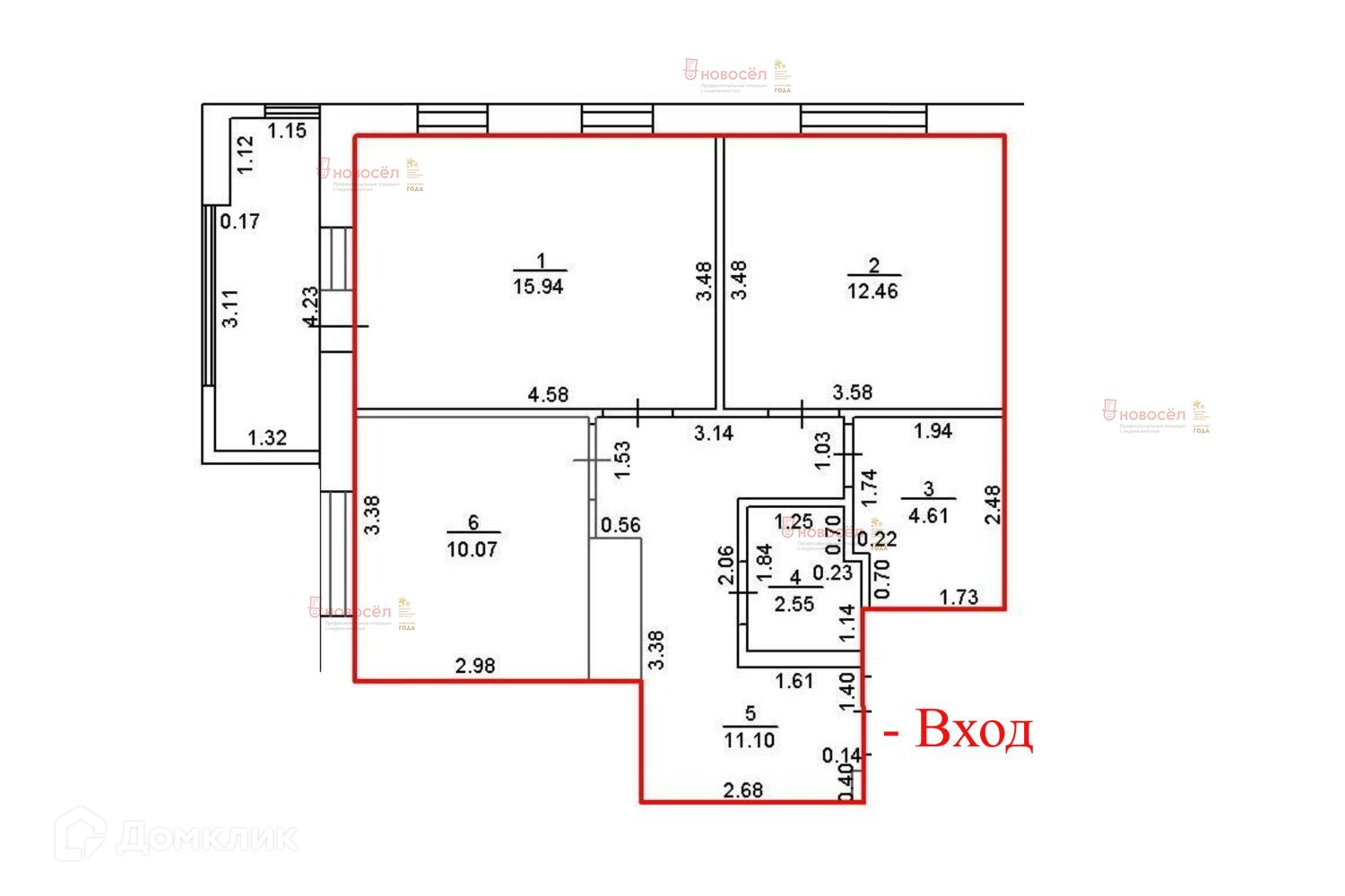 Общая площадь 56 м2