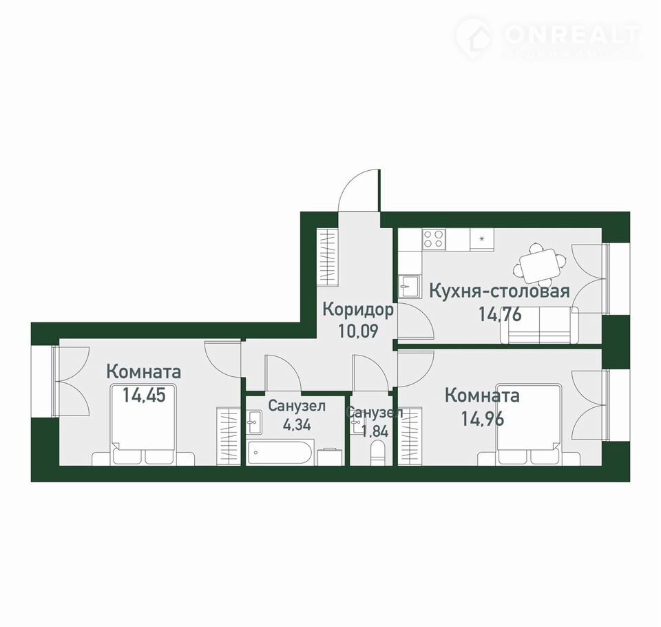 Площадь кухни 14.7 м2