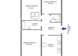 Общая площадь: 75 м2