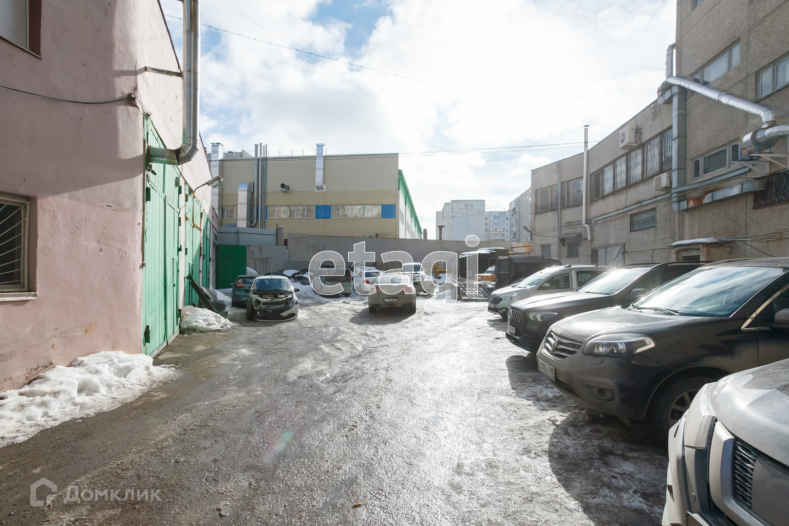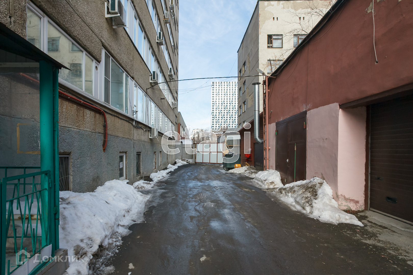 Есть закрытый внутренний двор с гаражами, земля в собственности.