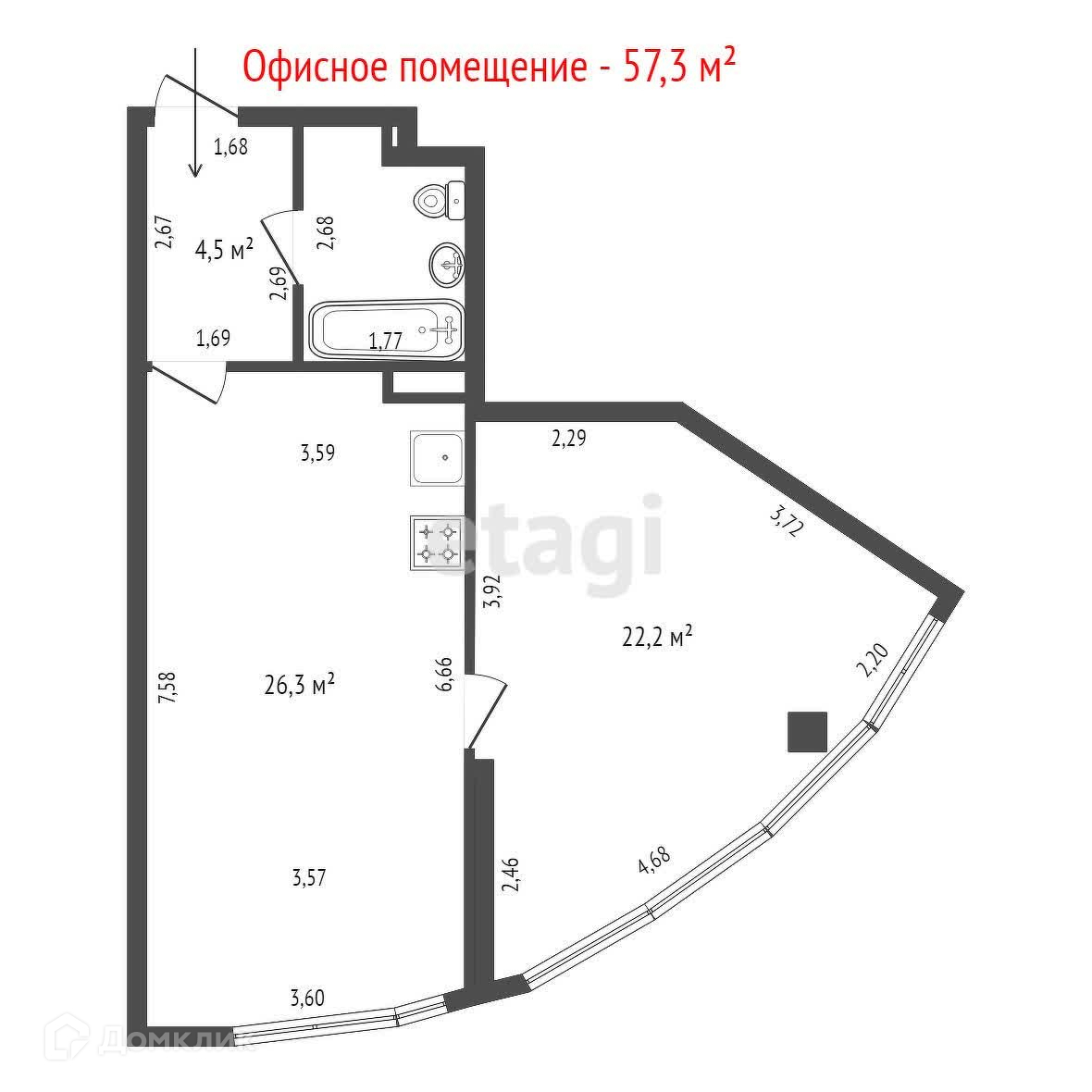 Общая площадь 57.3 м2