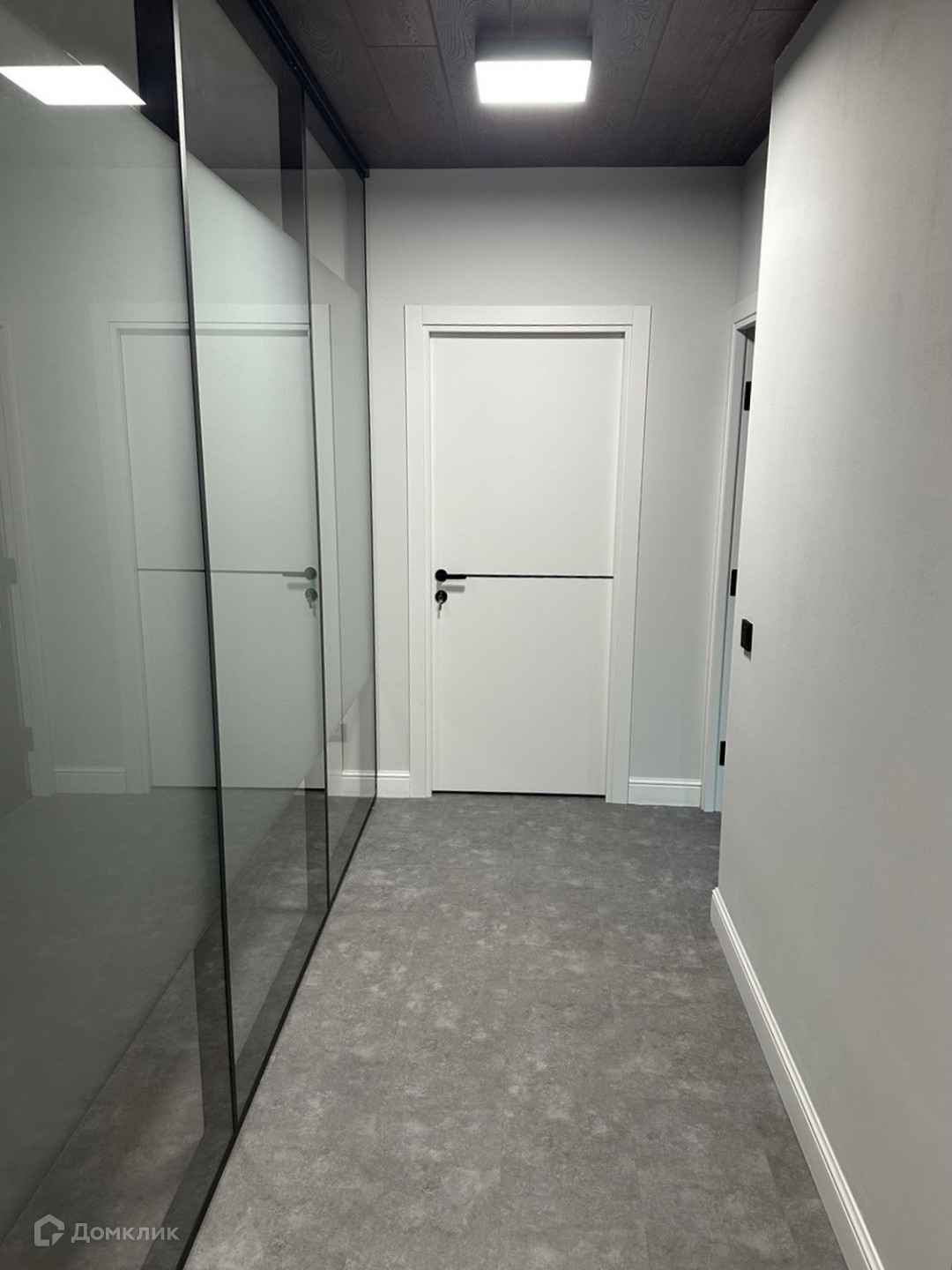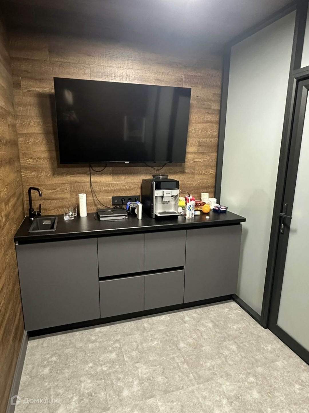Выполнен дорогой и качественный ремонт, помещение разделено на различные зоны с использованием стеклянных перегородок.
