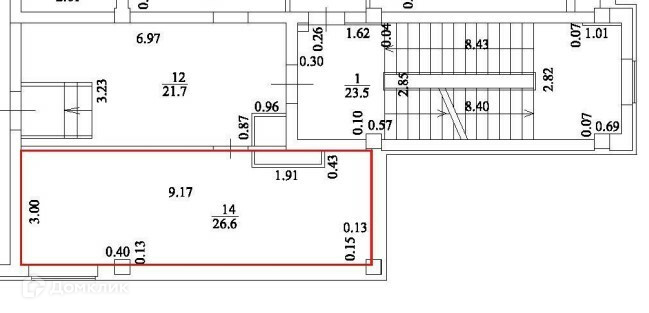 Общая площадь 26.6 м2