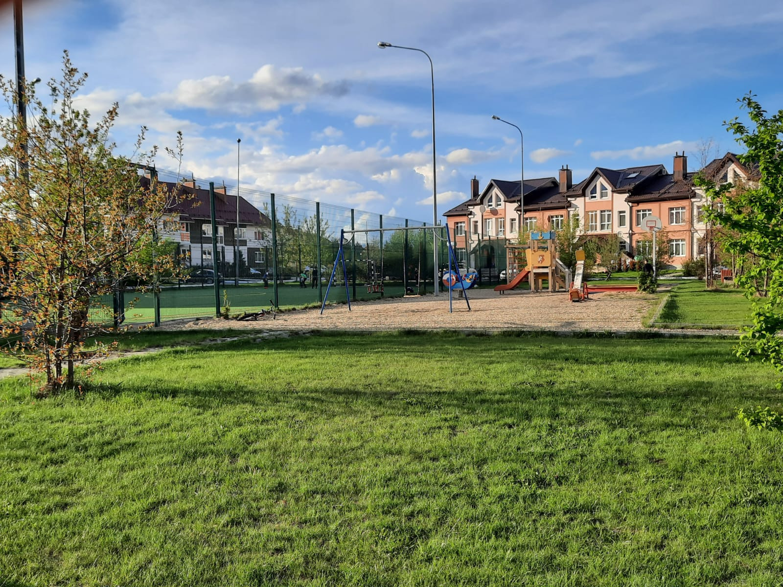 Поселок охраняемый, огорожен, много зеленых насаждений. Имеются детские площадки, баскетбольное поле, футбольное поле. На территории поселка имеется площадка для выгула собак. Рядом школы, детские сады, поликлиника (детская и взрослая), в шаговой доступности остановка транспорта, ТЦ Мега, Радуга парк.