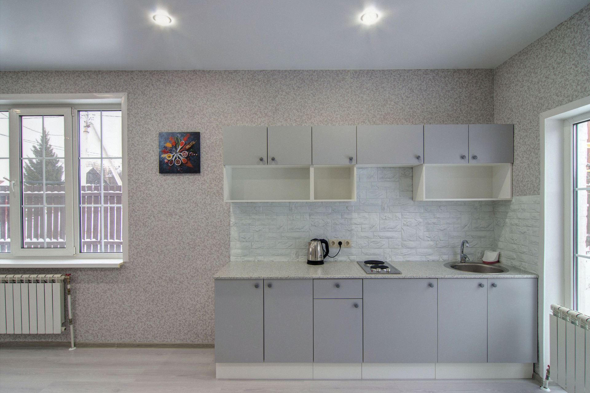 На первом этаже: кухня-гостиная и санузел.