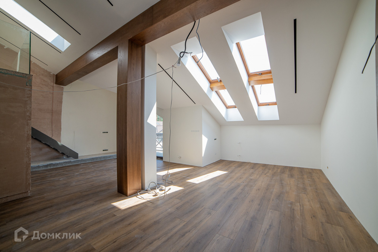 Разработан дизайнерский проект отделки . Выполнено панорманое остекление , установлено порядка 7 мансардных окон . Котельная на немецком оборудовании премиум -класса WOLF,. Инжереная сети: выполнены каналы под вентиляцию, отопления ,и теплый пол, разводка электрики и акустики, шинопровод под светильники. На полу бетонная стяжка, стены оштукатурены под покраску. на 3 этаже кварцвиниловые полы и несущие балки из дубового шпона.